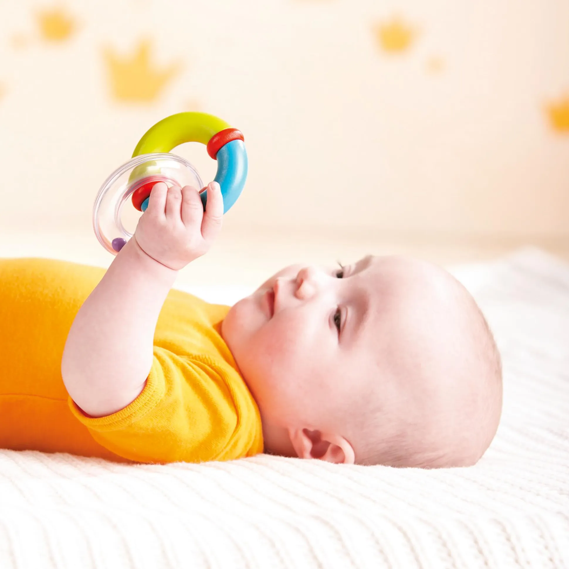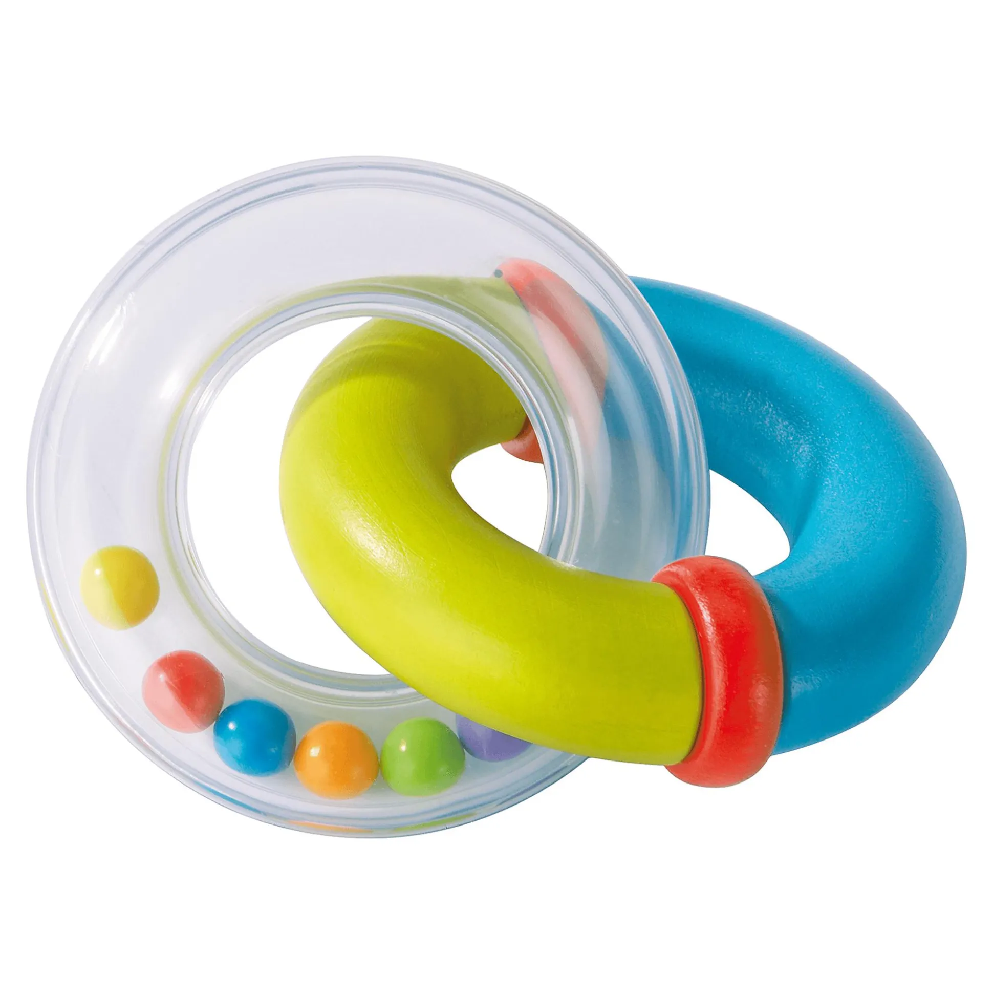 Dieser kunterbunte Greifling Ringel-Duo von HABA fördert spielerisch die Hand-Auge-Koordination deines Nachwuchses. Dank der kleinen Kügelchen im Inneren rasselt der Greifling lustig und bietet deinem Kind so jede Menge Abwechslung und akustische Reize.