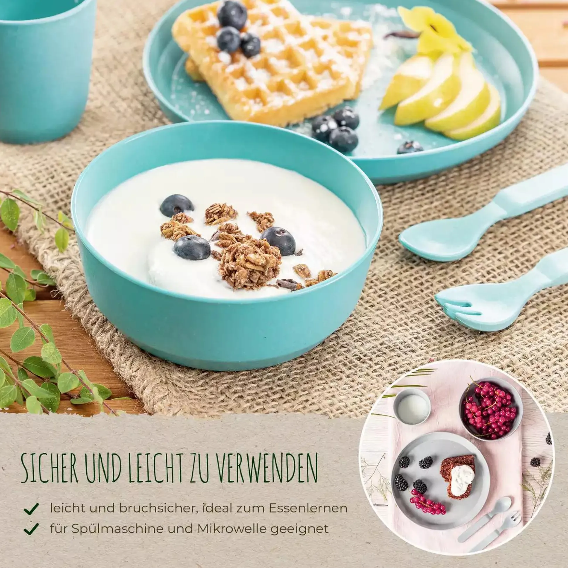 - frei von Melamin, BPA und PVC