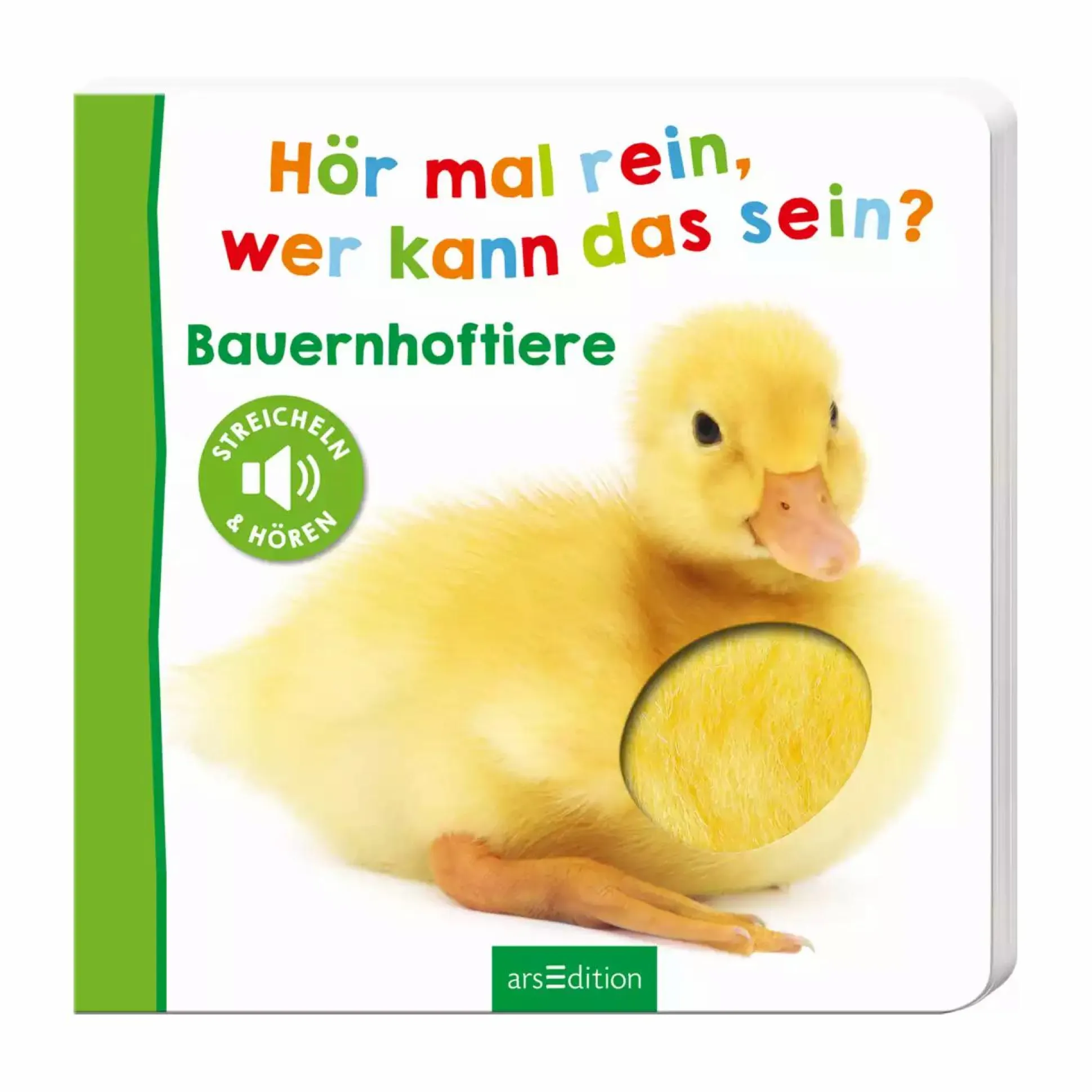 Das Küken piepst, die Kuh macht muh und das Schwein grunzt fröhlich. Doch wie klingen das Schaf und das Pferd? Hier kannst du es entdecken. Einfach über das kuschelweiche Fell der Tiere streicheln und schon wird der Bauernhof lebendig. Das Fühlbuch mit vielen hochwertigen Fotos und Soundmodulen begeistert schon die Kleinsten und macht das gemeinsame Vorlesen zum interaktiven Erlebnis für alle Sinne. Auf jeder Doppelseite wird ein Bauernhoftier mit vielen anschaulichen Fotos und einem kurzen Sachtext vorgestellt. Das weiche Fell lädt zum Fühlen ein und beim Darüber Streicheln wird das passende Tiergeräusch ausgelöst. Das ist nicht nur spannend, sondern förder auch die Hand-Auge-Koordination, die Lautbildung und das Sprechen.