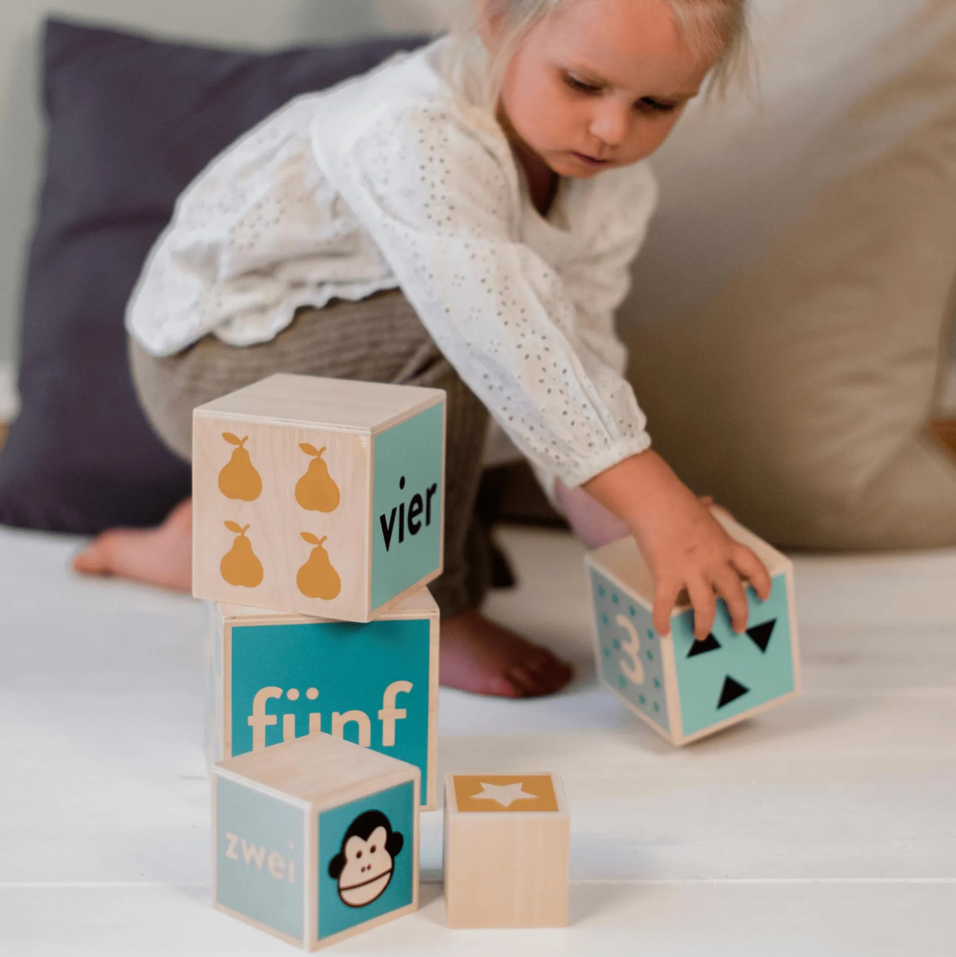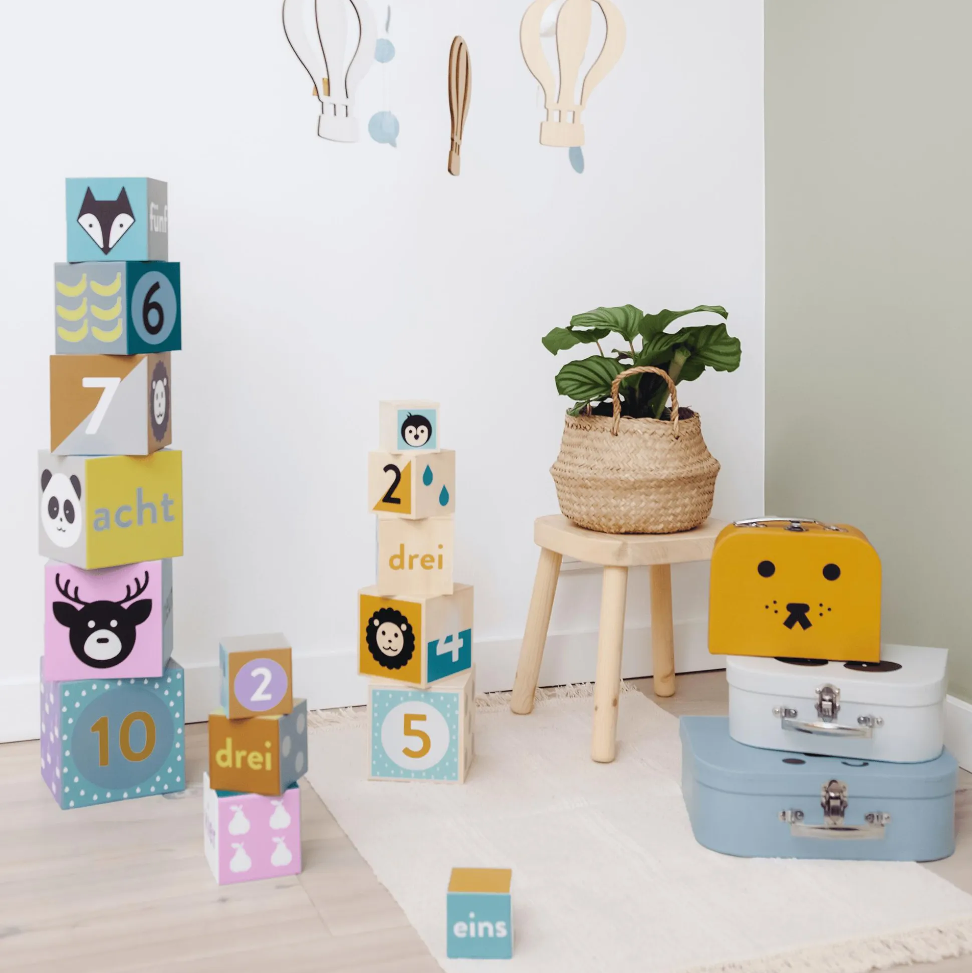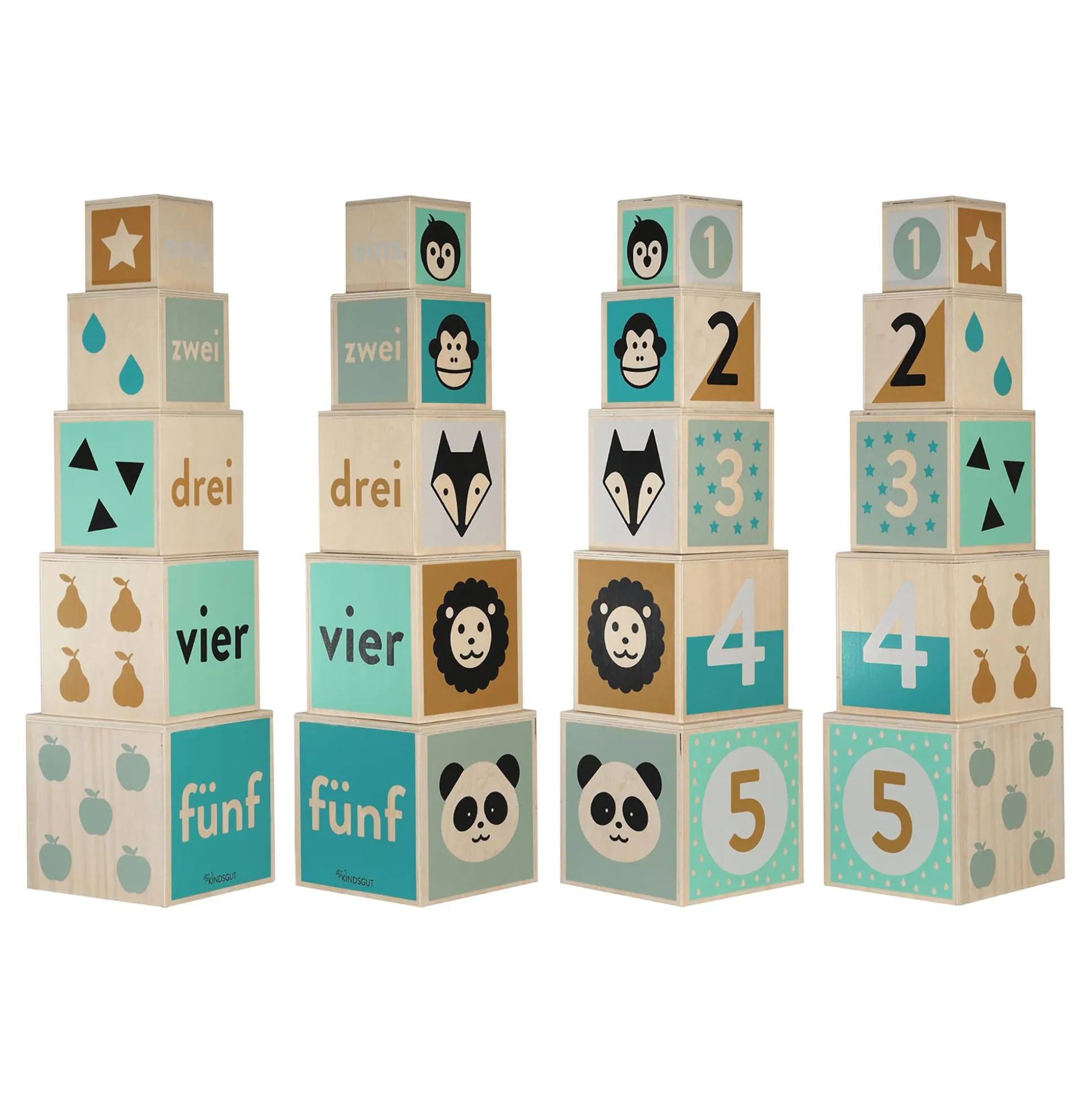 Der Kindsgut Holz-Stapelturm verbindet kindliches Design und schöne dezente Farben mit hochwertiger Holzqualität. Das liebevoll designte Lernspielzeug passt ideal in jedes Kinderzimmer. Durch das Spielen mit dem Holz-Stapelturm wird dein Kind dabei unterstützt, seine motorischen Fähigkeiten zu verbessern. Außerdem kann so ein spielerisches Lernen der Zahlen von 1-5 stattfinden. Die dezenten Farben und kindlichen Motive machen das Spielzeug zur optimalen Ergänzung und zu einem eindrucksvollen Hingucker in deinem Zuhause.