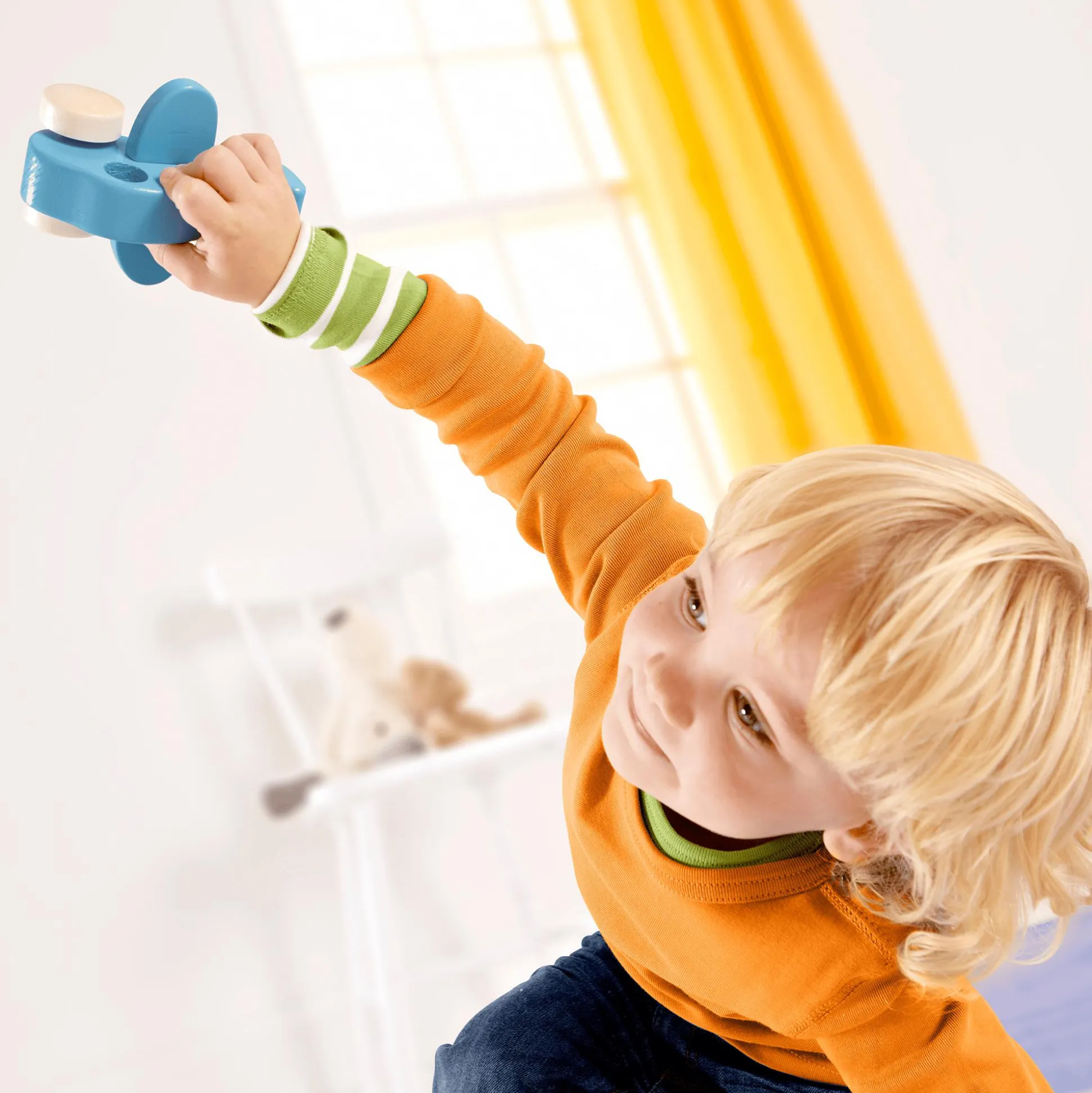 Das Hape Holzflugzeug ist das ideale Spielzeug für kleine Entdeckerinnen und Entdecker ab etwa zehn Monaten. Mit seinem kinderfreundlichen Design und den leichtgängigen Holzrädern ist es perfekt für kleine Hände geeignet. Das Flugzeug fördert die Feinmotorik und regt die Fantasie deines Kindes an.