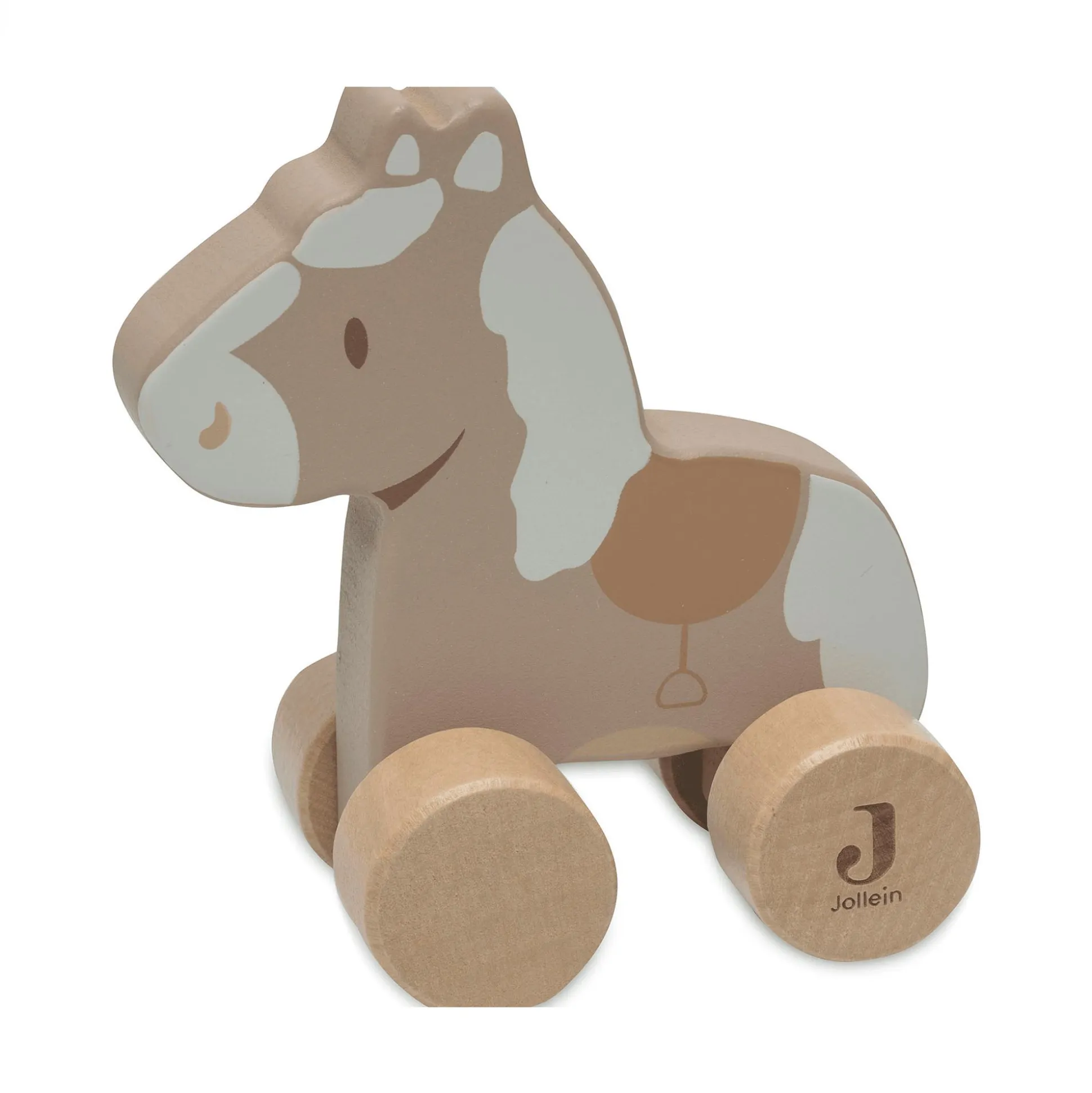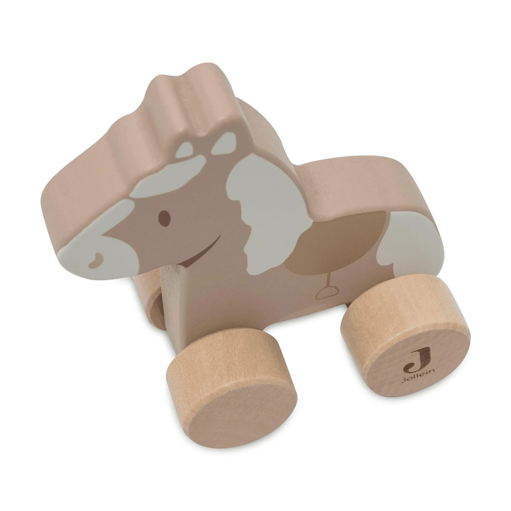 Das Holzpferd von Jollein ist ein tolles Spielzeug auf Rädern, das deinem kleinen Nachwuchs ab ca. einem Jahr viel Freude bereiten wird. Mit seiner kompakten Größe ist das Holzspielzeug leicht zu greifen und zu schieben – ideal für kleine Kinderhände. Ob zuhause oder unterwegs – das niedliche Pferd sorgt für jede Menge Spielspaß und eignet sich wunderbar zum Verschenken.