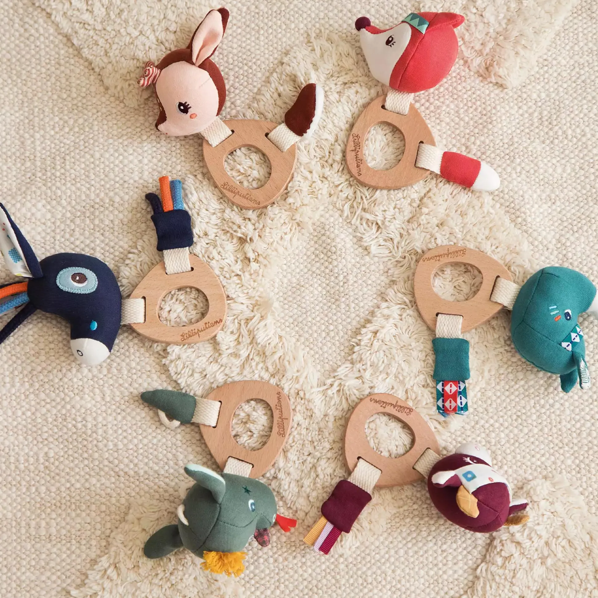 Diese Holzrassel Ignace von Lilliputiens besteht aus biologischer Baumwolle und FSC-zertifiziertem Holz. Die Rassel hat eine einen weichen Eselkopf, welcher ein fröhliches Geräusch macht, sowie einen Holzring zum Nuckeln. Durch diese Details wird die Rassel zu einem echten Erlebnis für deinen kleinen Schatz.