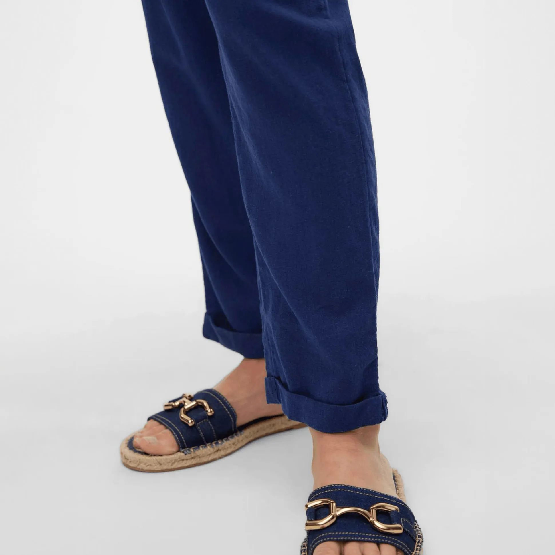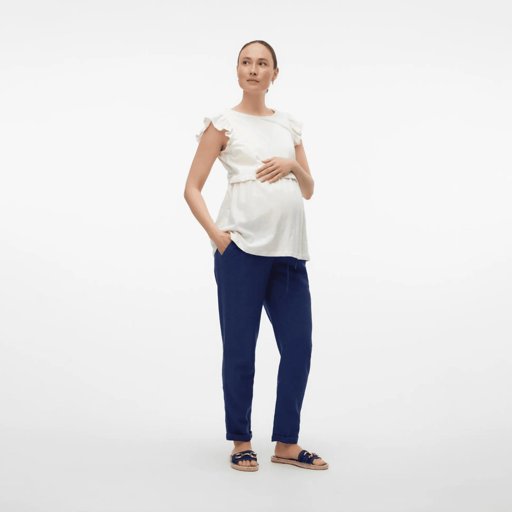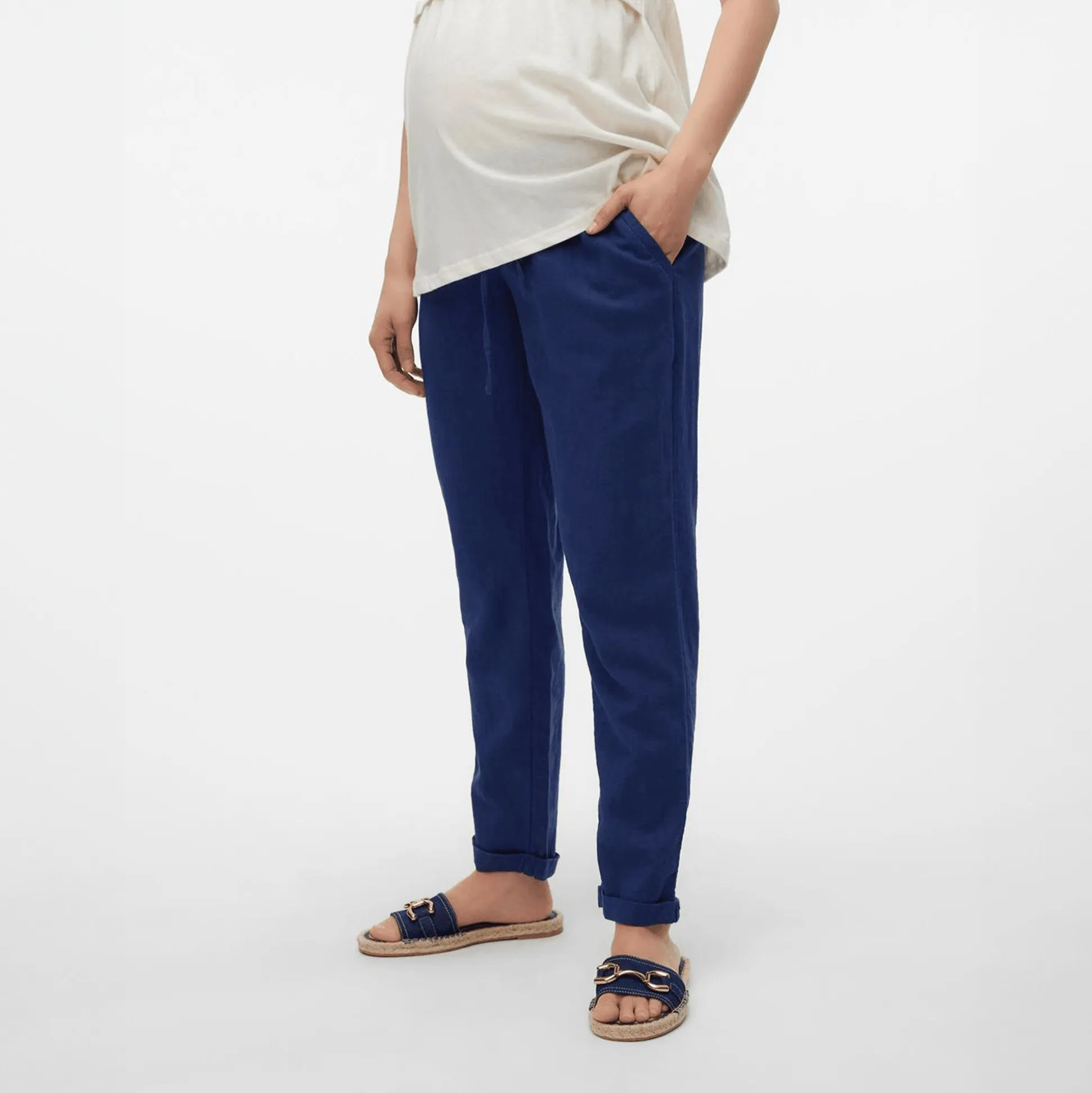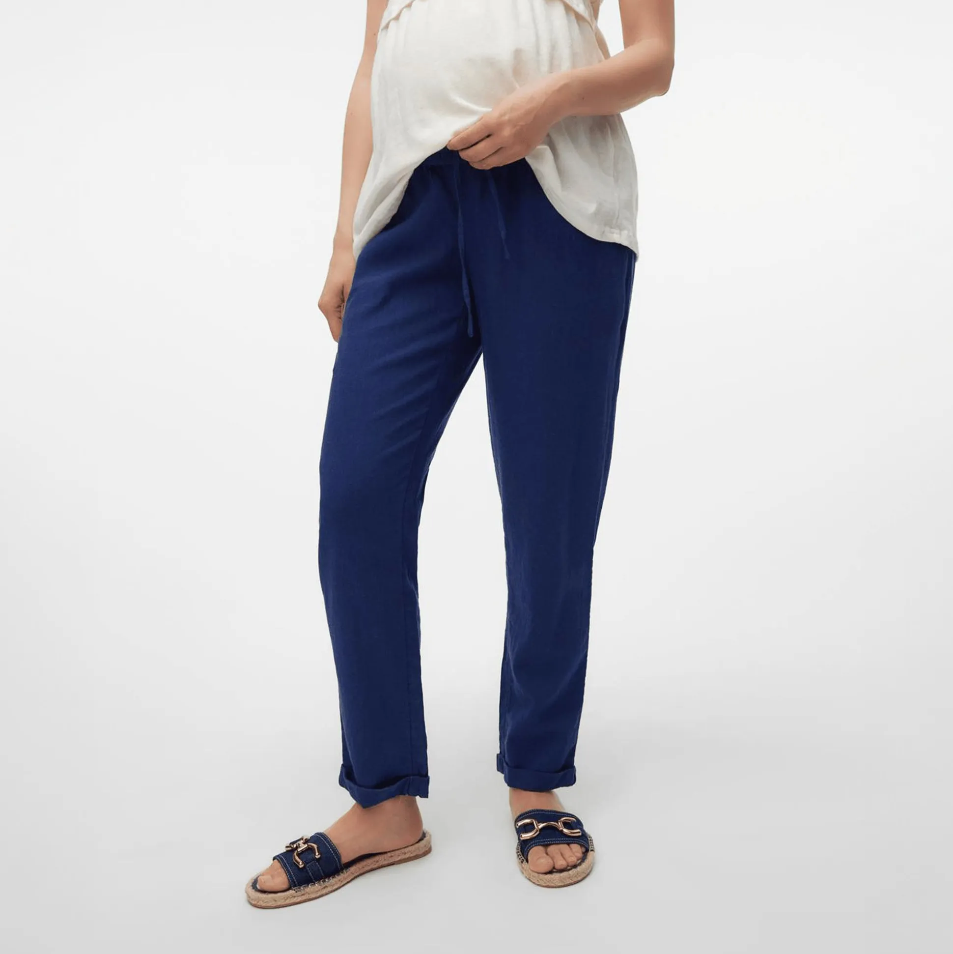 Diese blaue Mamalicious Umstands-Hose Naval Academy aus 55% Leinen sowie 45% LENZING™ ECOVERO™ Viscose passt in jeder Phase deiner Schwangerschaft. Die schlichte aber schicke Hose mit Kordelzugverschluss und komfortablem Bauchband eignet sich nicht nur wunderbar für den Alltag, sondern auch für festliche Anlässe.