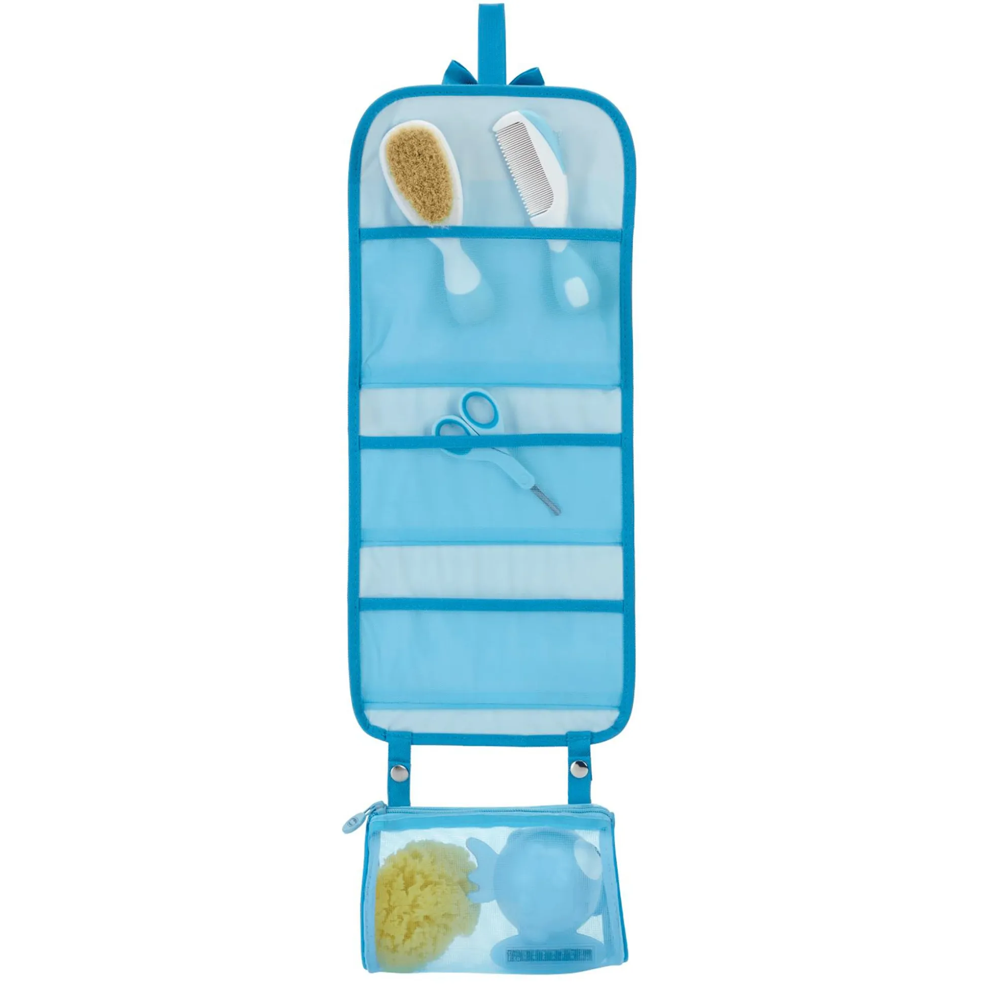 Die praktische Kulturtasche von chicco ist die ideale Aufbewahrungsmöglichkeit für die ersten Hygieneartikel deines Nachwuchses! Der kompakte Helfer kann problemlos an die Wand gehangen werden und die abnehmbare Netztasche kannst du zum Trocknen nasser Accessoires nutzen.
