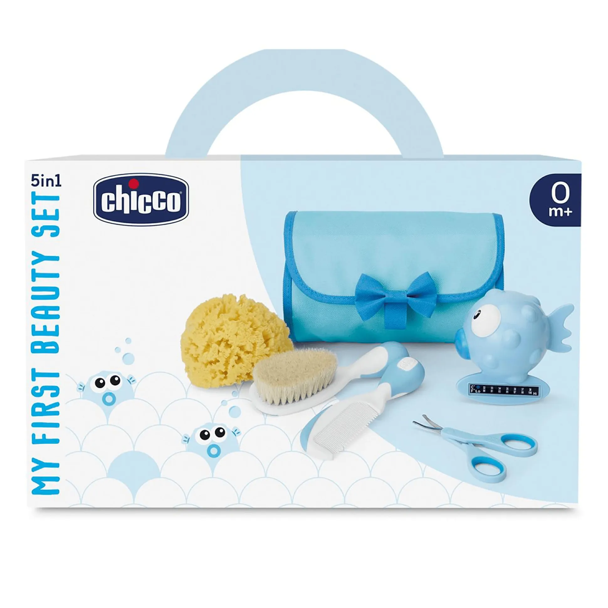 - inklusive 1 Kamm, 1 Bürste, 1 Babyschere mit Schutzkappe, 1 Badethermometer Fisch, 1 Naturschwamm