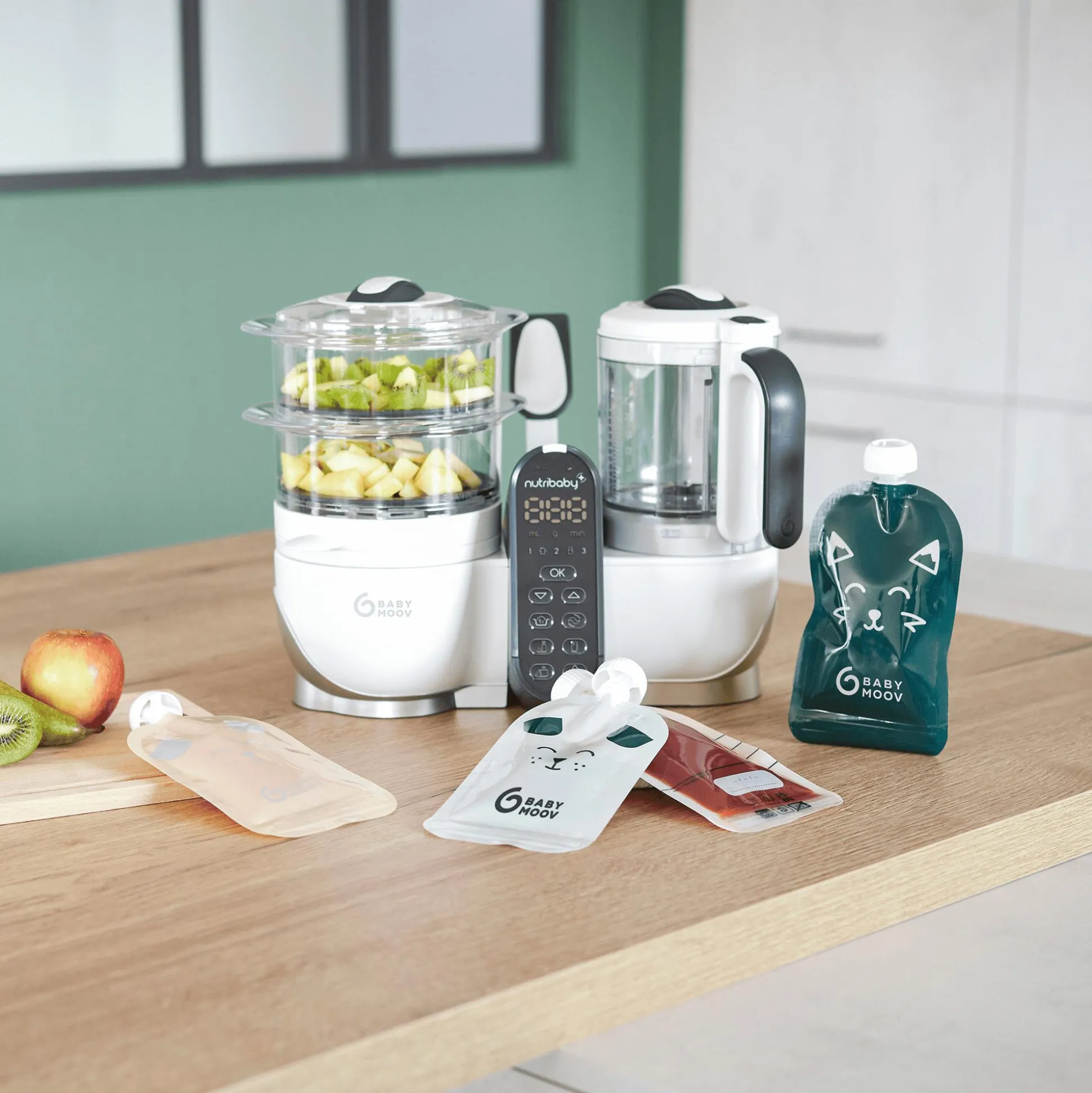 Je nach Geschmack deines Kindes kannst du die Beutel mit 150ml Püree, Kompott, Joghurts oder vieles mehr befüllen. Sie haben eine große Öffnung auf der Unterseite und lassen sich dank des Zippverschlusses verlässlich verschließen.