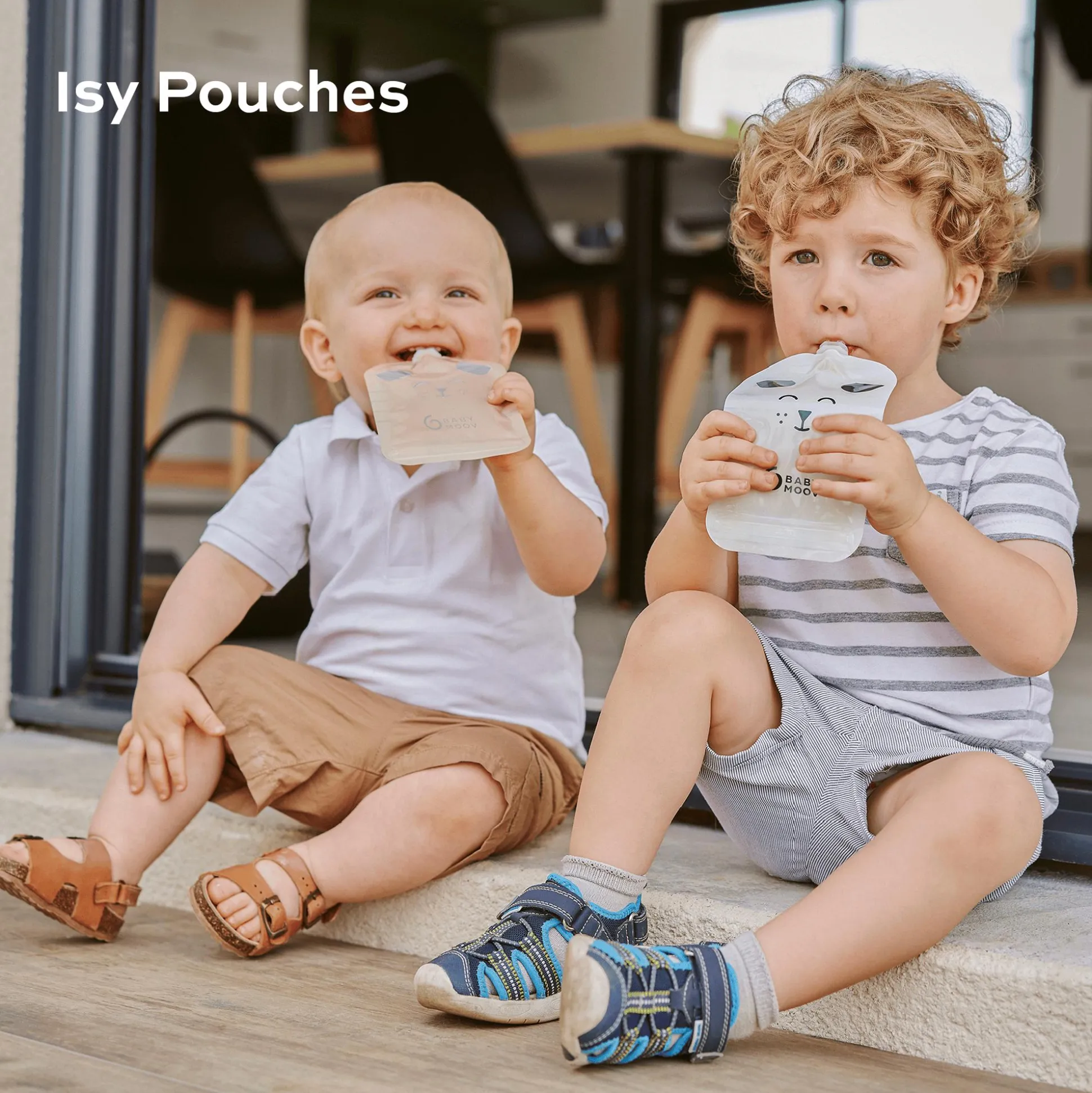 Die ISY Quetschbeutel kommen in einem 20er Pack, in niedlichen Designs zu dir nach Hause und sind wiederverwendbar, sodass du einen Beutel sogar bis zu 20-mal benutzen kannst.