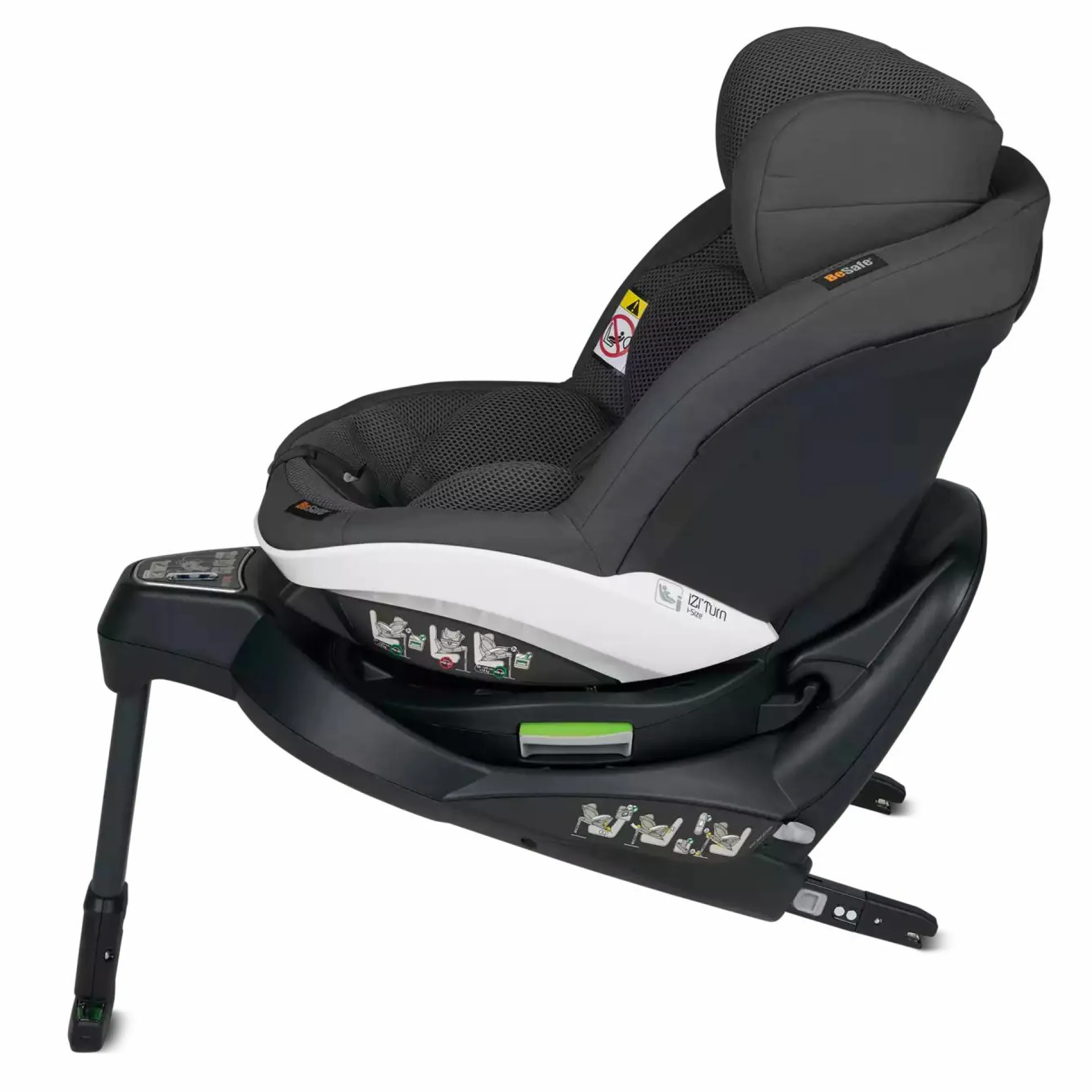 Der BeSafe iZi Turn i-Size im edlen Design Anthracite Mesh von BeSafe ist ein 360° drehbarer Autokindersitz. Er ist nach dem neuesten Sicherheitsstandard UN R129 (i-Size) geprüft und zugelassen. Als reiner Reboarder ermöglicht der Sitz ab einem Alter von ca. 6 Monaten bis zu 4 Jahren sicher rückwärts und vorwärts mitzufahren. Er ist mit 2 Sicherheits-Features ausgestattet, wie den eingebauten Seitenaufprallschutz in der Sitzschale und einem zusätzlichen Seitenaufprallschutz, der zusätzlich 20% der Kräfte absorbiert.