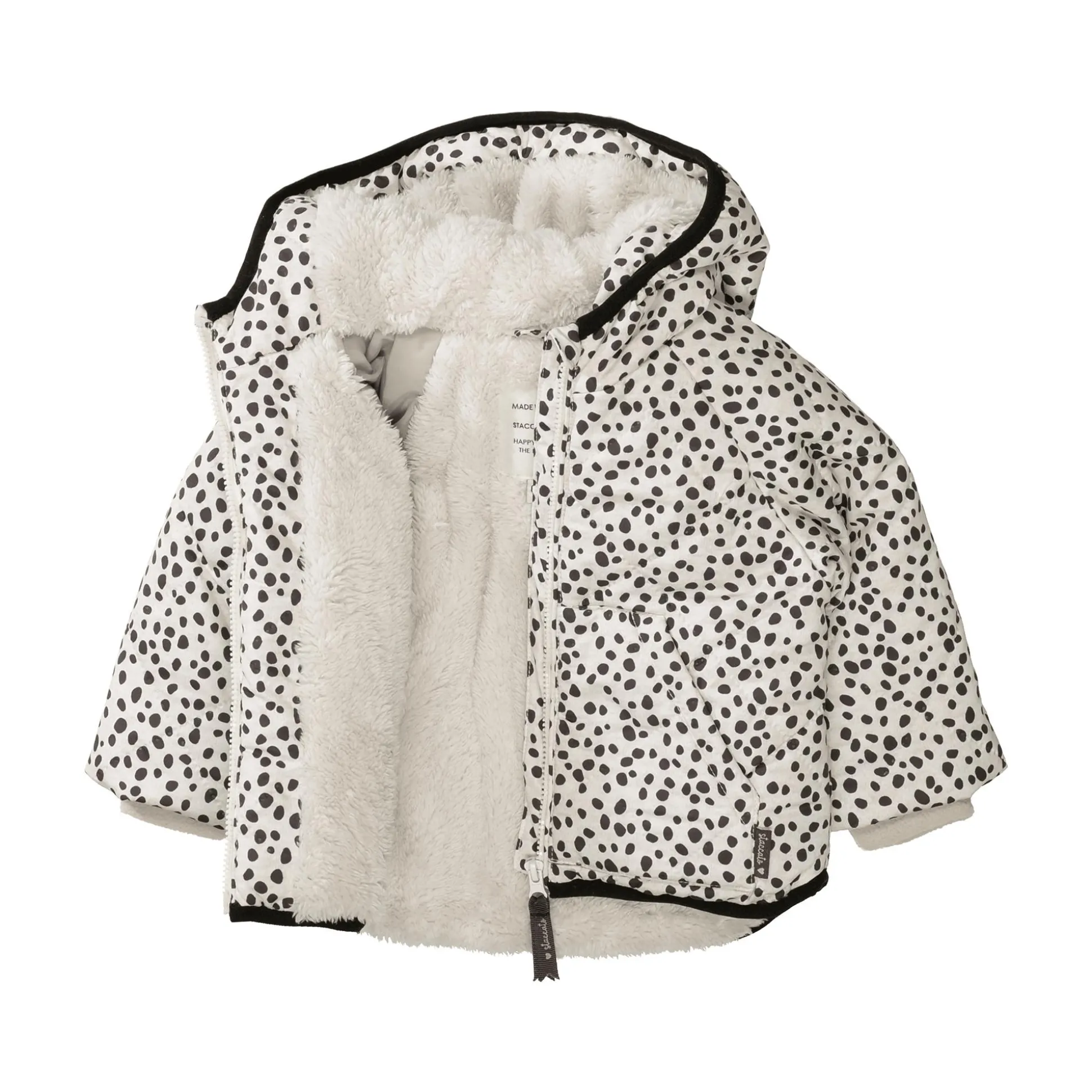Die Jacke Punkte von Staccato ist der ideale Begleiter für kalte Tage. Mit ihrem süßen Punktemuster und der gefütterten Kapuze hält sie deinen kleinen Schatz warm und stylisch. Der durchgehende Reißverschluss erleichtert das An- und Ausziehen, während das weiche Innenfutter für extra Komfort sorgt.