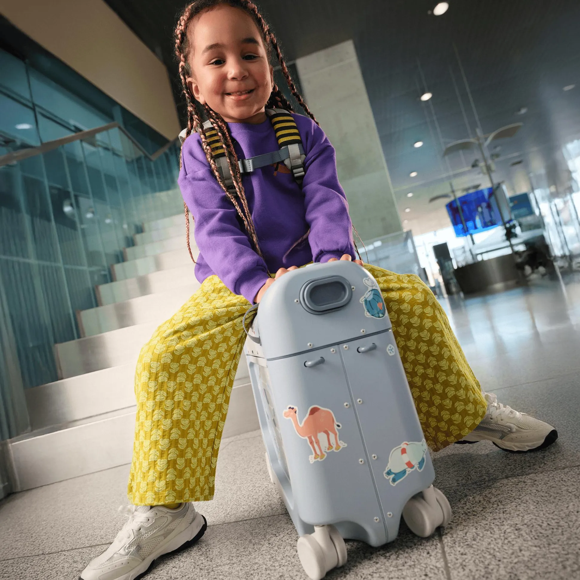 Die BedBox™ ist unterhaltsam, funktional und hat ein großes Fassungsvermögen für alles, was dein Kind braucht. Auf dem gepackten Koffer kann dein Kleines sicher und stressfrei durch den Flughafen fahren oder gezogen werden. Sobald das Sicherheitsgurtzeichen erloschen ist, kannst du die BedBox™ in fünf einfachen Schritten vom Koffer in ein Bett verwandeln. Der Aufsitzkoffer ist geeignet für Kinder von ca. zwei bis sieben Jahren. Offiziell zugelassen von vielen Fluggesellschaften.