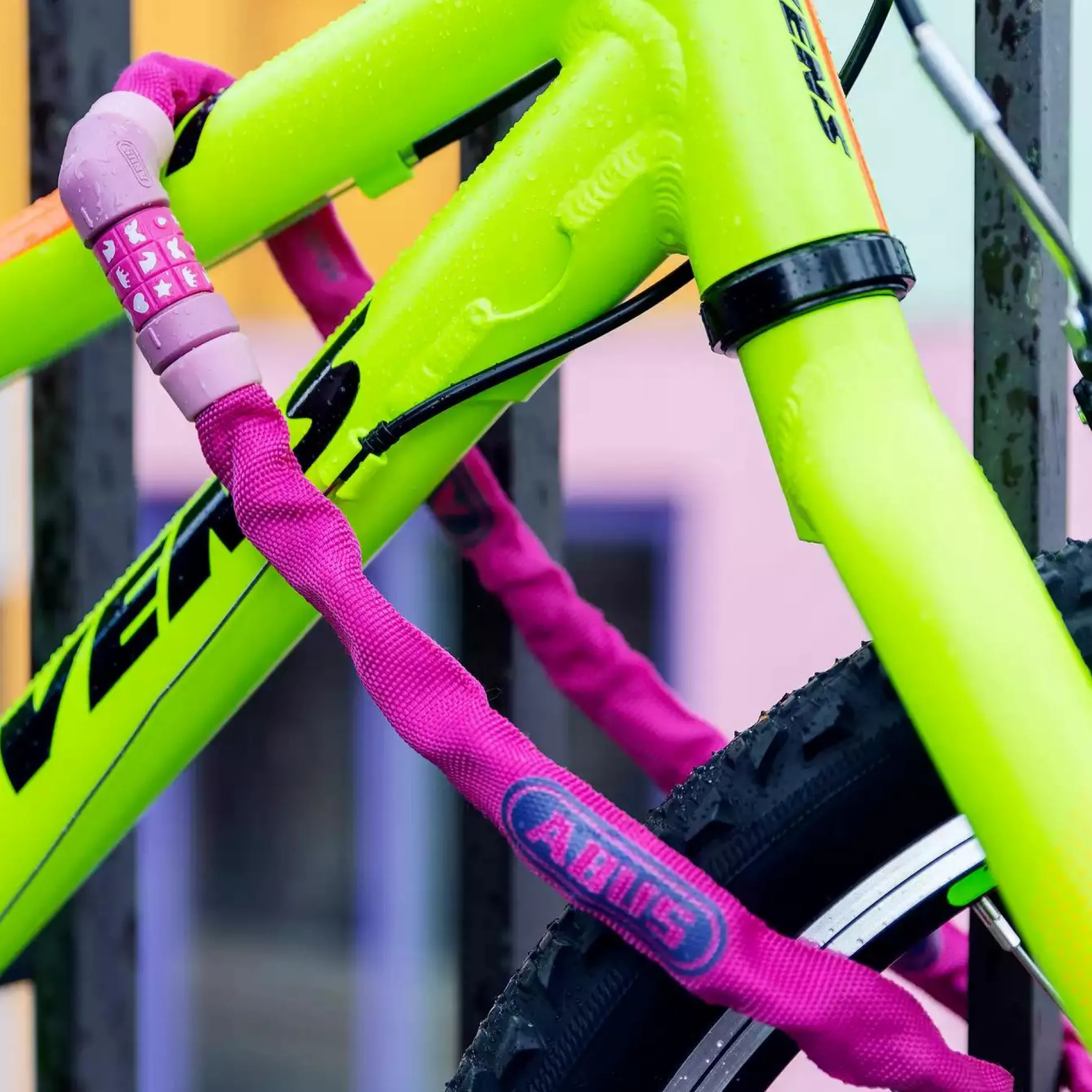 Auch günstige Räder und Kinderfahrräder werden gestohlen. Das ABUS Kettenschloss Steel-O-Chain™ 4804C SYMBOLS in der Farbe Pink ist die sichere Variante, wenn nur ein geringes Diebstahlrisiko besteht. Die 4 mm starke Vierkantkette ist aus Spezialstahl gefertigt und mit einem Textilschlauch zum Schutz vor Lackschäden ummantelt.