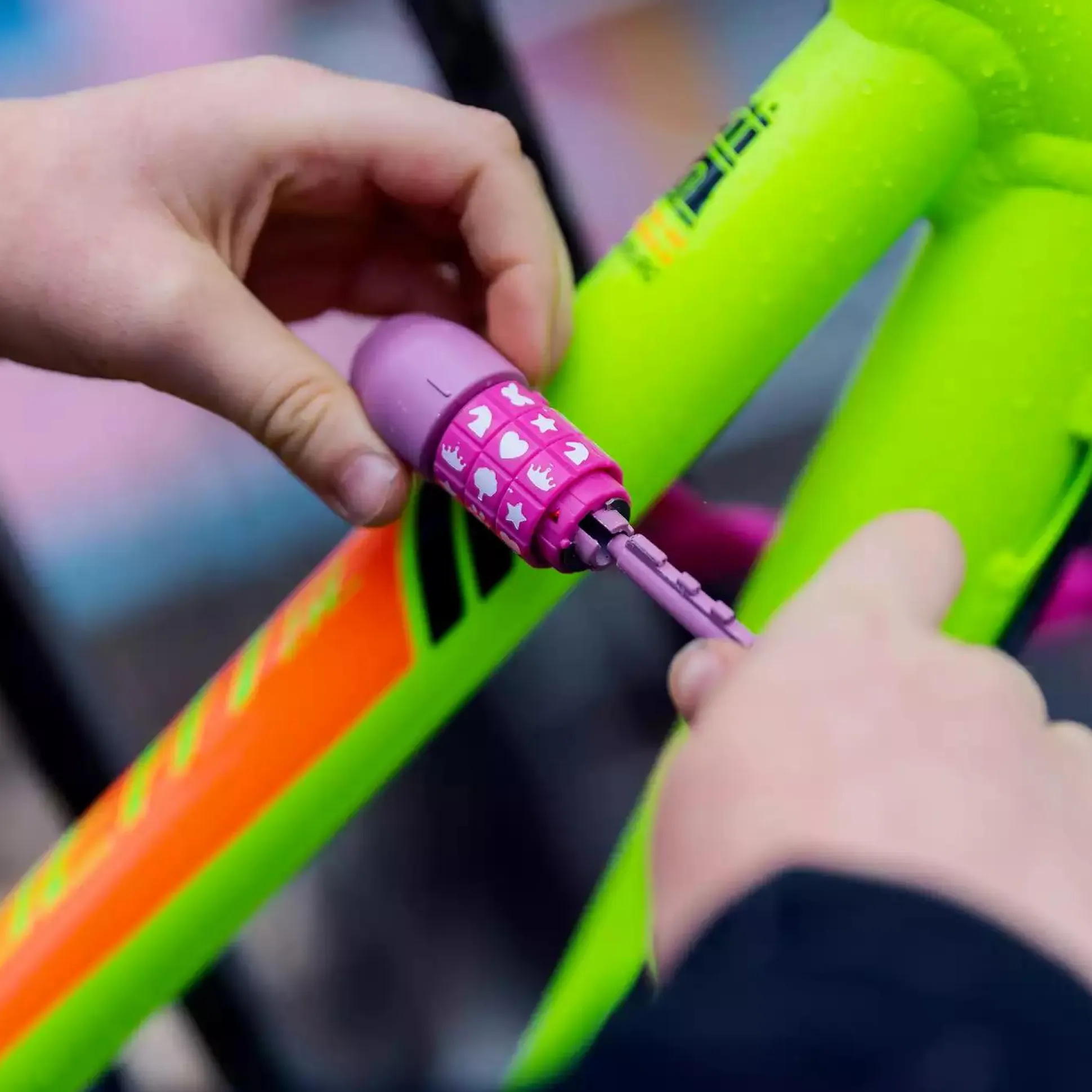 | Color | Pink, PinkVorteilekinderfreundliche Handhabung durch Symbole statt ZahlenVierkantkette mit Textilschlauch zum Schutz vor Lackschäden |
