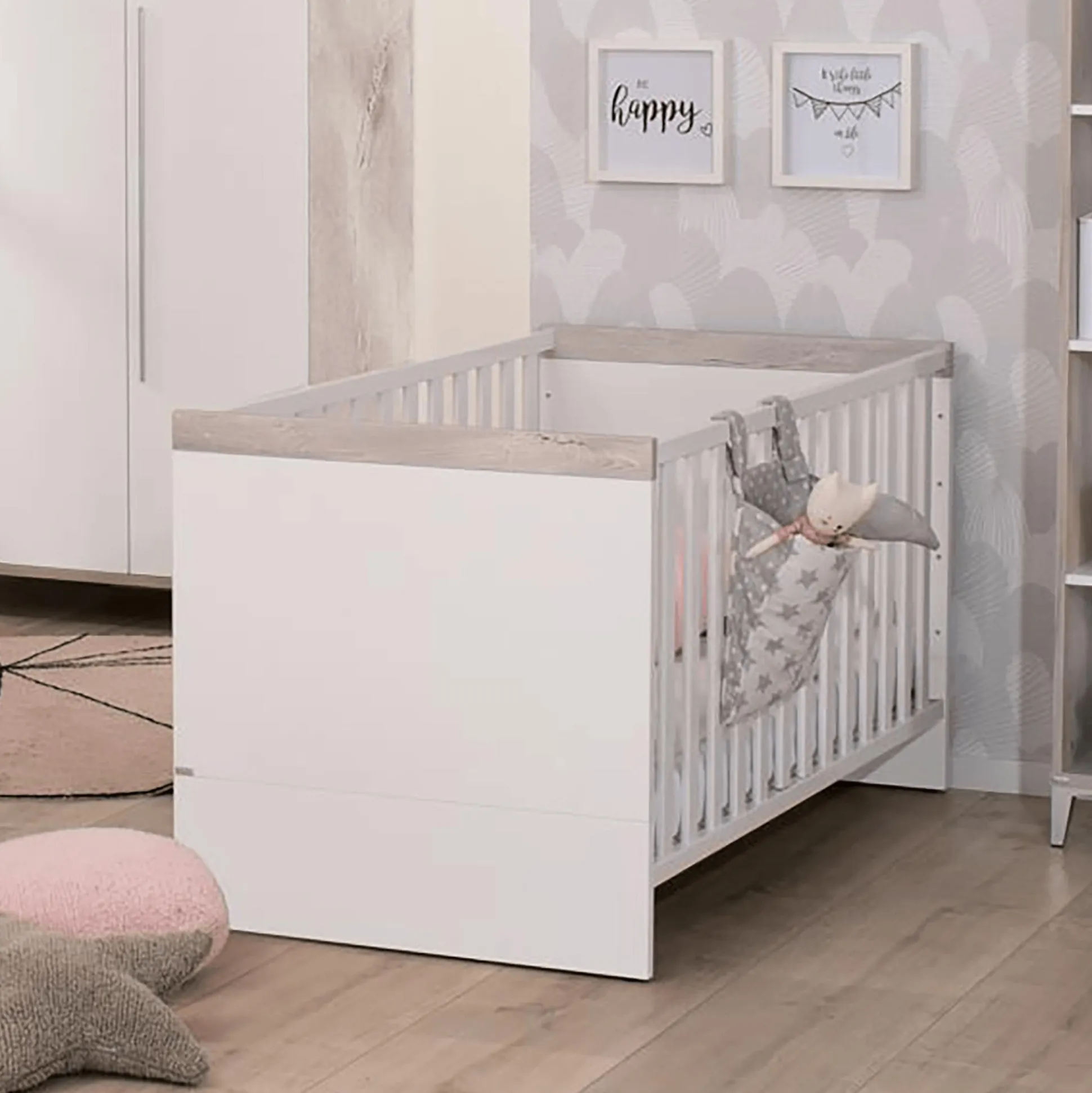 - mit separat erhältlichen Umbauseiten zum Juniorbett umbaubar