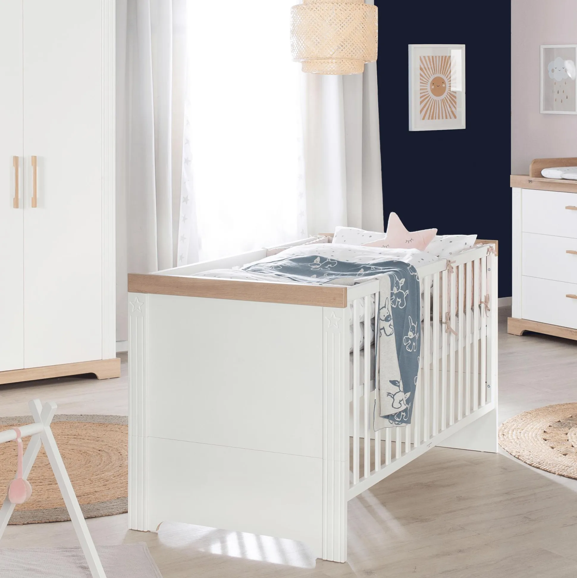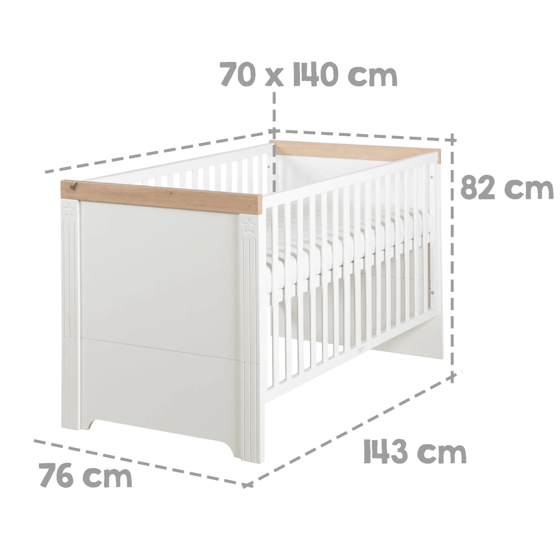 - mit separat erhältlichen Umbauseiten zum Juniorbett umbaubar