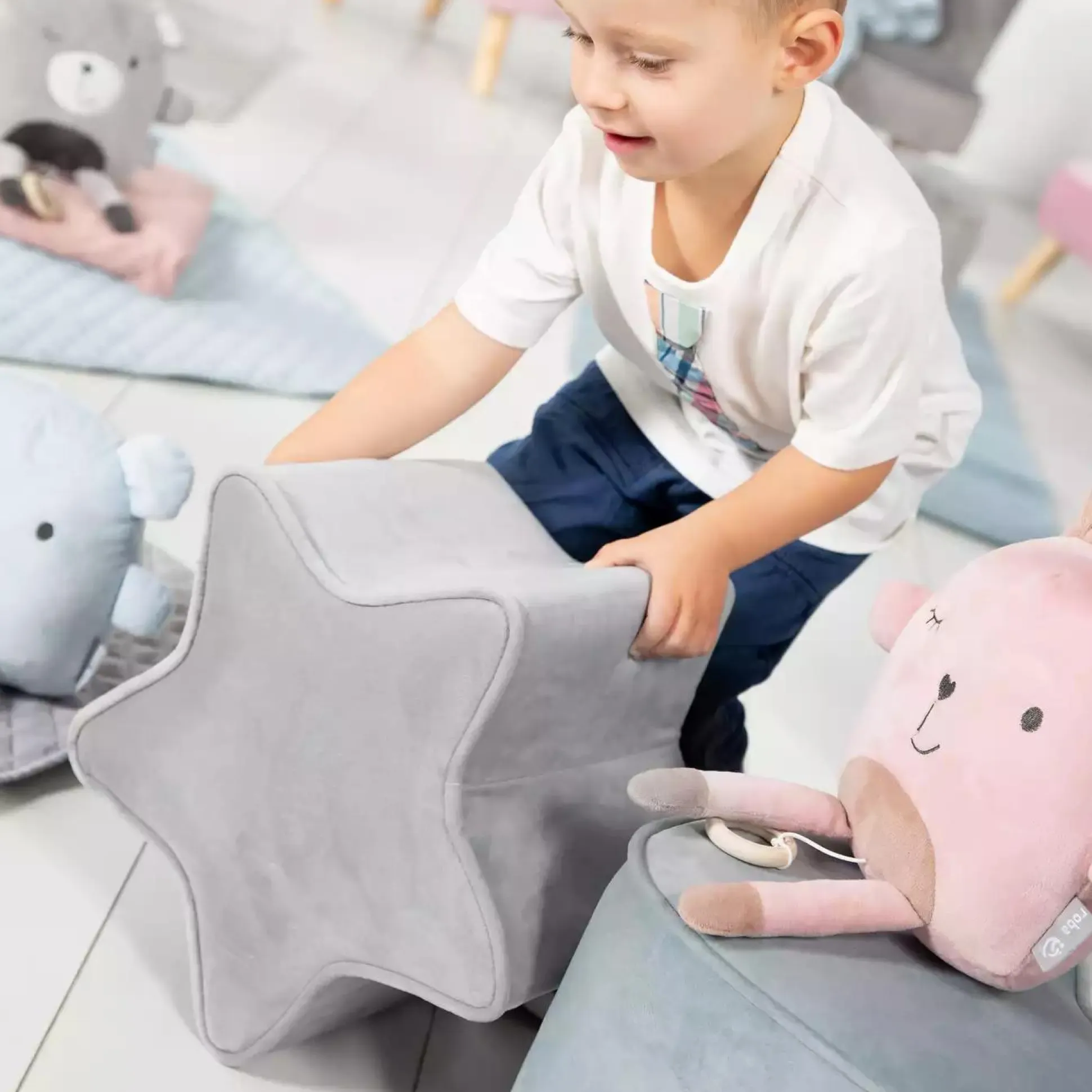 Der roba Kinderhocker in Sternform ist ein Blickfang im Kinder- oder Babyzimmer. Der weich gepolsterte Kinderhocker ist mit Samtstoff bezogen, der mit seiner pfirsichweichen Oberfläche beeindruckt. Dank seiner kindgerechten Sitzhöhe von 24 cm ist der Sitzpouf bereits für die Kleinsten schön bequem.