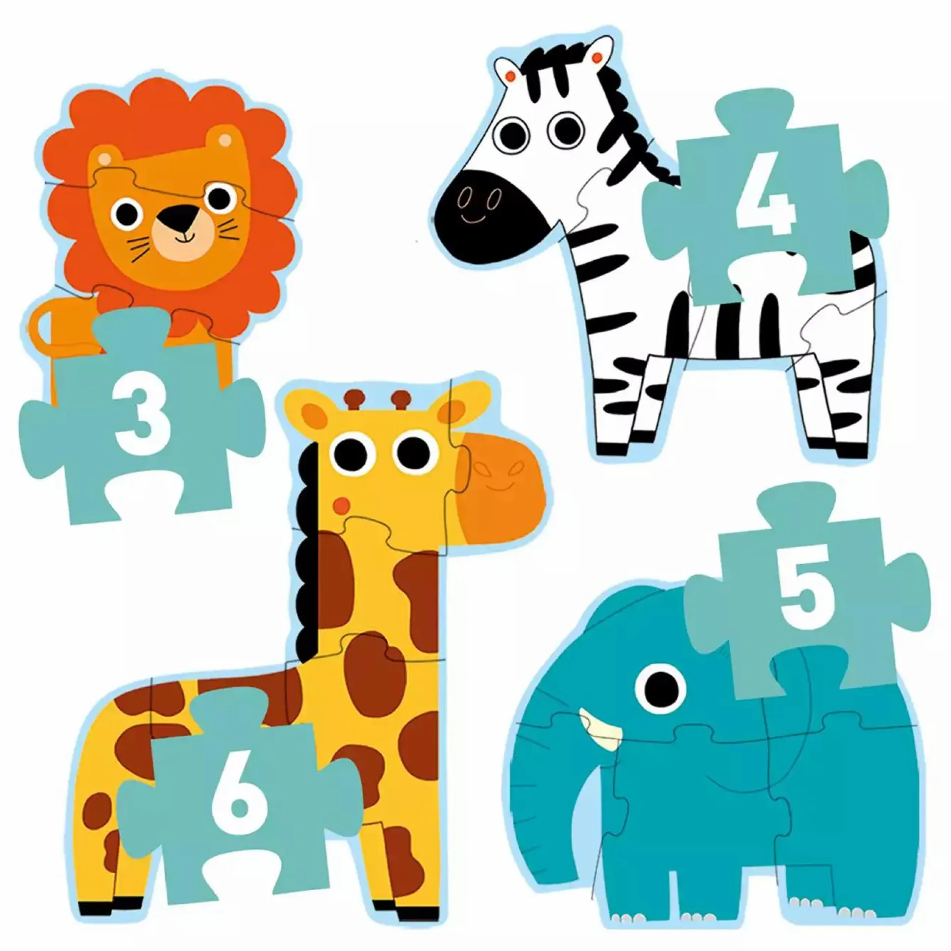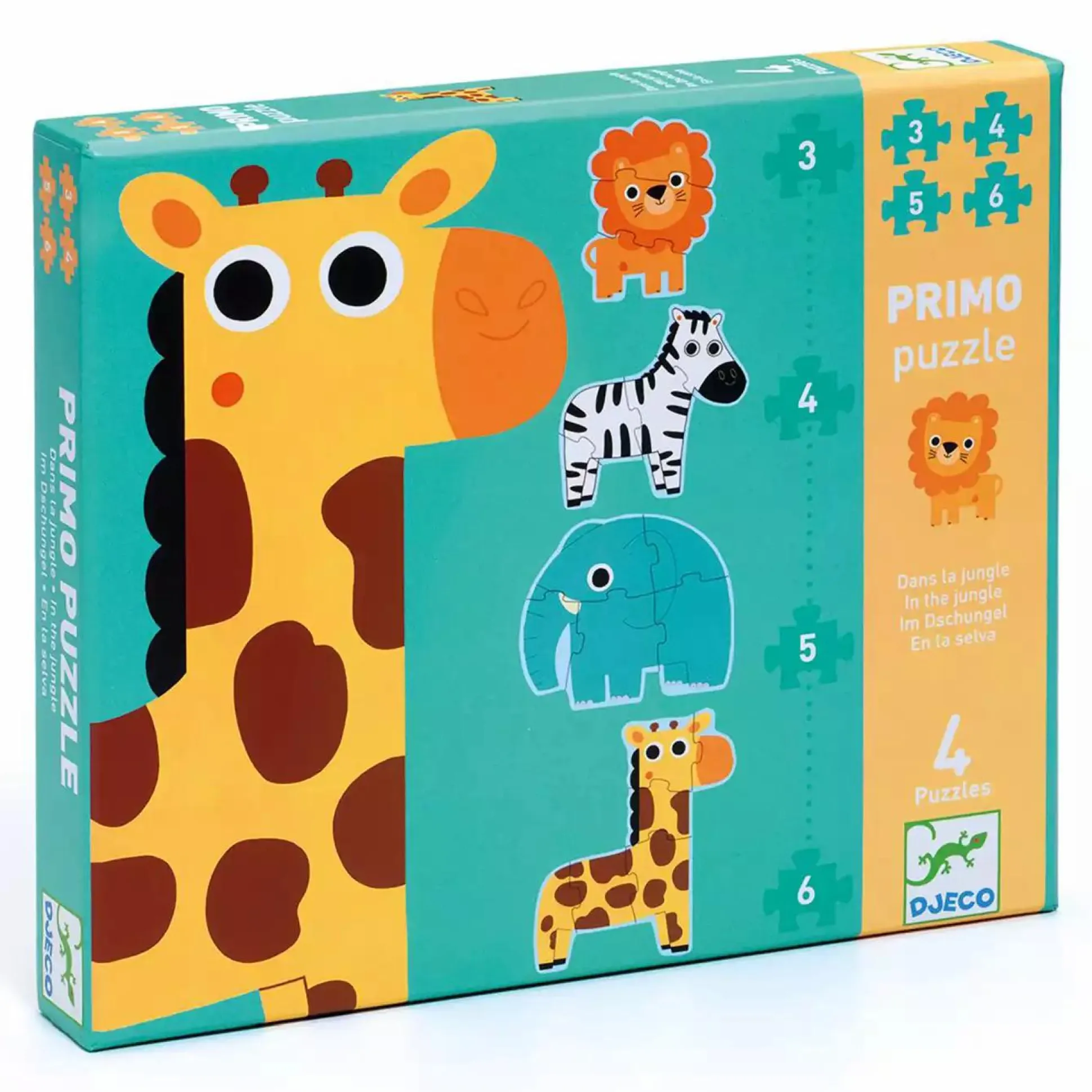Das Kinderpuzzle Im Dschungel von Djeco nimmt deinen kleinen Schatz mit auf die Reise in den Dschungel. Insgesamt gibt es 4 Puzzles mit unterschiedlich vielen Teilen und die Puzzles ergeben vier farbenfrohe Dschungeltiere. Die Auge-Hand-Koordination sowie das räumliche Denken werden automatisch beim Puzzlen gefördert. Es ist ab einem Alter von ca. 2 Jahren geeignet.