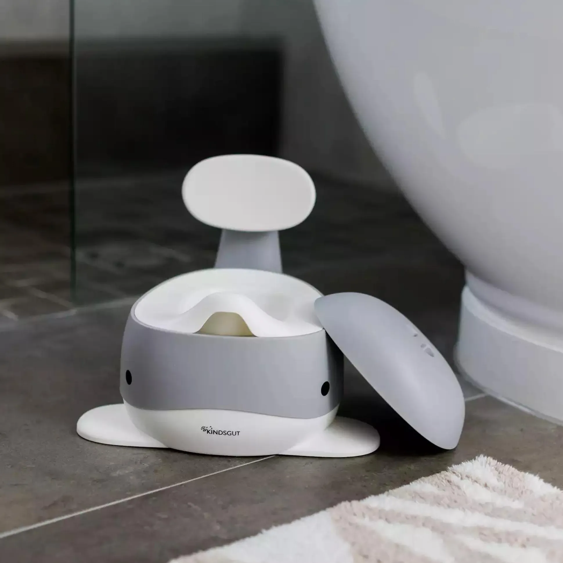 Das Kindertöpfchen von Kindsgut ist eine ideale Hilfe zum Abgewöhnen der Windel. Es ist neben seinem ansprechenden Design in Wal-Optik eine tolle Unterstützung für den Toilettengang deines Kindes. Das Töpfchen bietet durch die Rückenlehne optimalen Sitzkomfort. Durch die speziellen Gumminoppen ist es rutschfest und so ein sicherer Begleiter. Die Materialien sind umweltfreundlich, frei von Schadstoffen, kindgerecht und nachhaltig, so kann das Töpfchen auch noch Jahre später den jüngeren Geschwistern Freude bereiten.