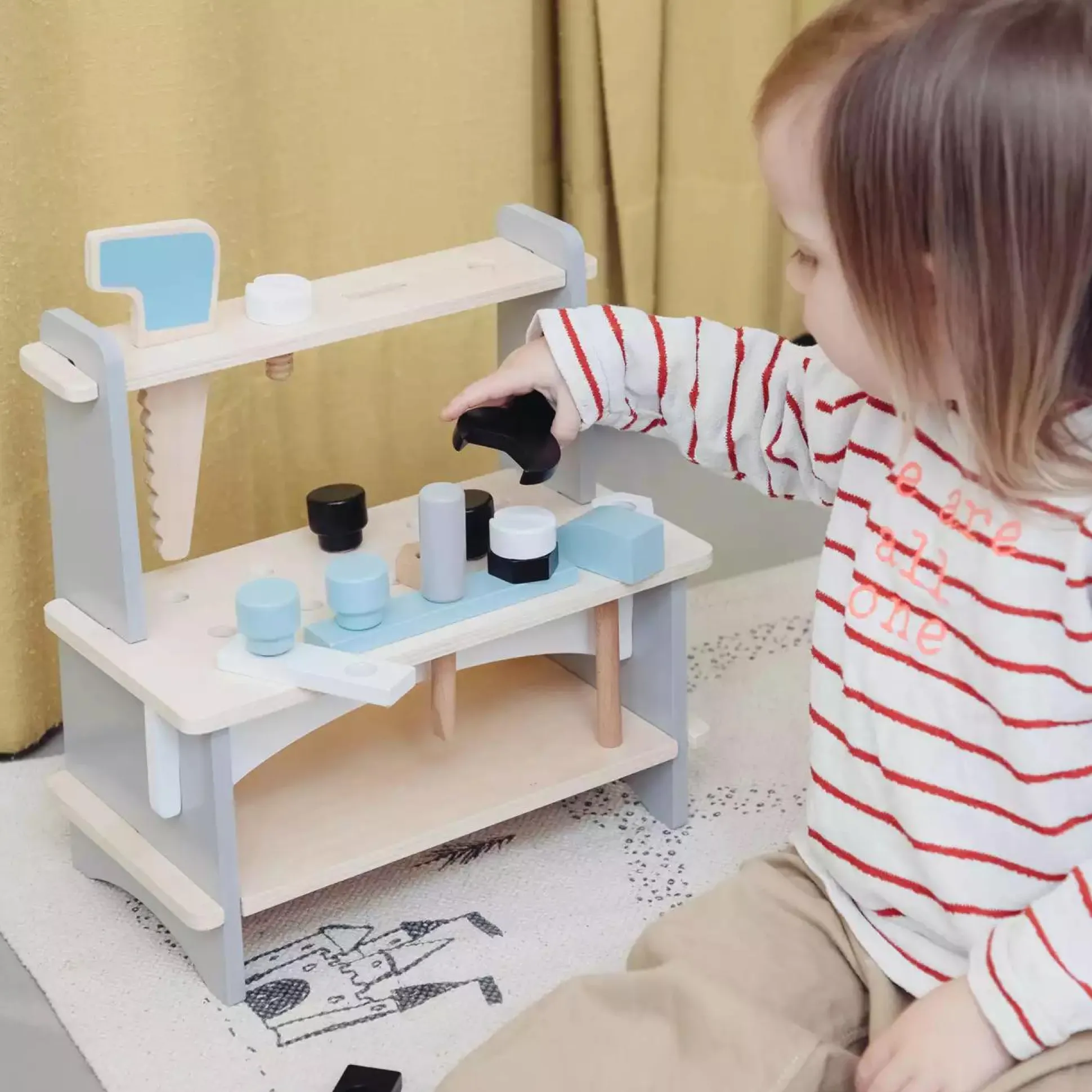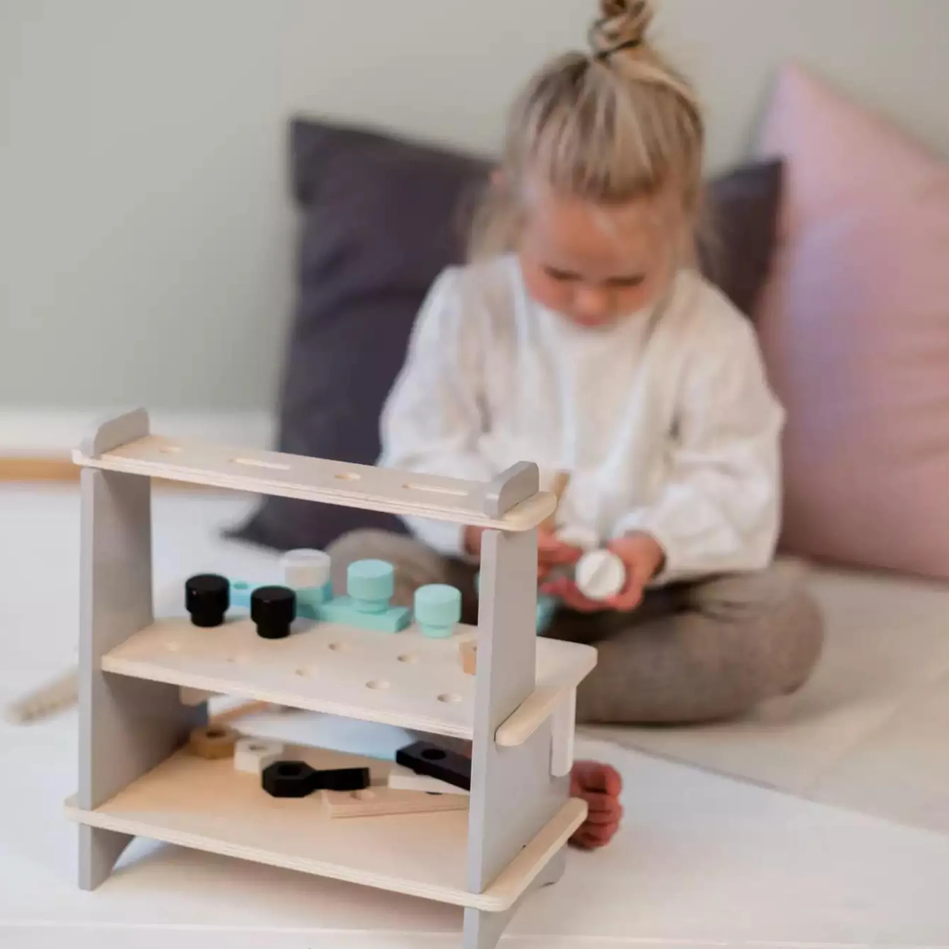 Mit dem tollen, dezenten Design lässt sich die Werkbank stilsicher in dein Wohnkonzept integrieren. Dank der dezenten Farben und der kindlichen Form ist das Spielzeug eine optimale Ergänzung und zusätzlich noch ein eindrucksvoller Hingucker.