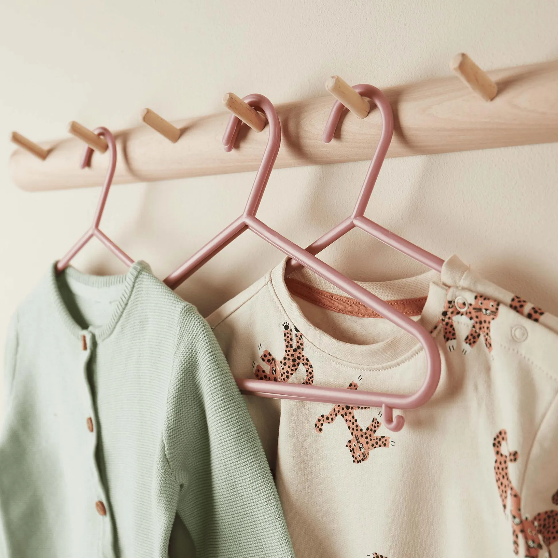 Aus hochwertigem Kunststoff gefertigt, sind die Babykleiderbügel besonders leicht im Gewicht, sehr stabil und auch für schwere Kleidungsstücke wie Winterjacken geeignet. Dadurch sind sie nicht nur ein must have in jedem Kinderzimmer, sondern auch ideal für Reisen geeignet – so ist immer alles gut organisiert. Dank einer Länge von etwa 30 cm können sie sehr lange für Kinderkleidung unterschiedlicher Größen genutzt werden.