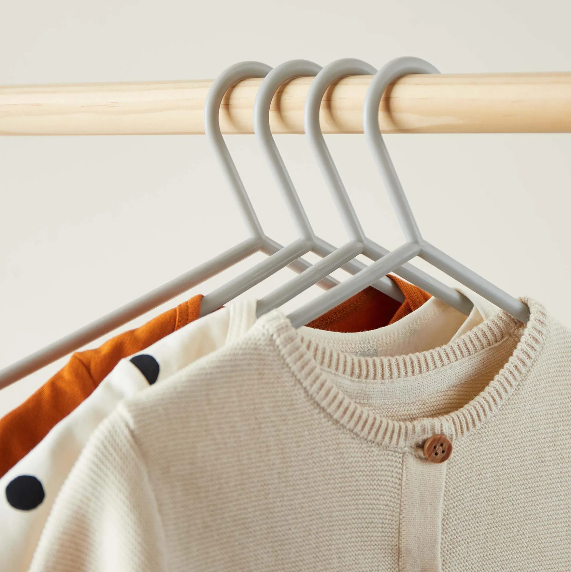 Aus hochwertigem Kunststoff gefertigt, sind die Babykleiderbügel besonders leicht im Gewicht, sehr stabil und auch für schwere Kleidungsstücke wie Winterjacken geeignet. Dadurch sind sie nicht nur ein must have in jedem Kinderzimmer, sondern auch ideal für Reisen geeignet – so ist immer alles gut organisiert. Dank einer Länge von etwa 30 cm können sie sehr lange für Kinderkleidung unterschiedlicher Größen genutzt werden.
