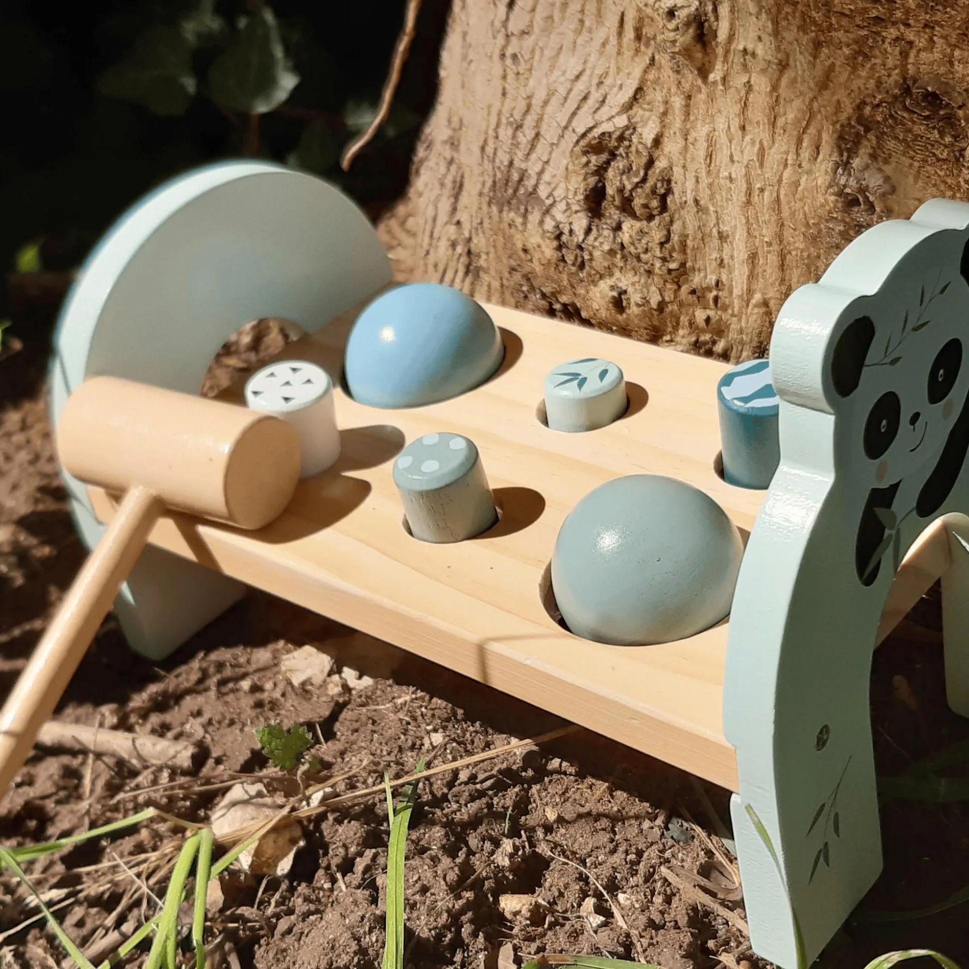 Die Eichhorn Klopfbank mit dem niedlichen Panda-Motiv wird dein Kind begeistern! Mit sechs bunten Stiften und Kugeln, die durch die Löcher der ca. 23 x 12,5 x 14,5 cm großen Bank geschlagen werden können, wird die Motorik deines kleinen Schatzes spielerisch gefördert. Geeignet für Kinder ab einem Jahr ist diese Klopfbank ein tolles Geschenk, das nicht nur Spaß macht, sondern auch die Entwicklung deines kleinen Schatzes unterstützt.