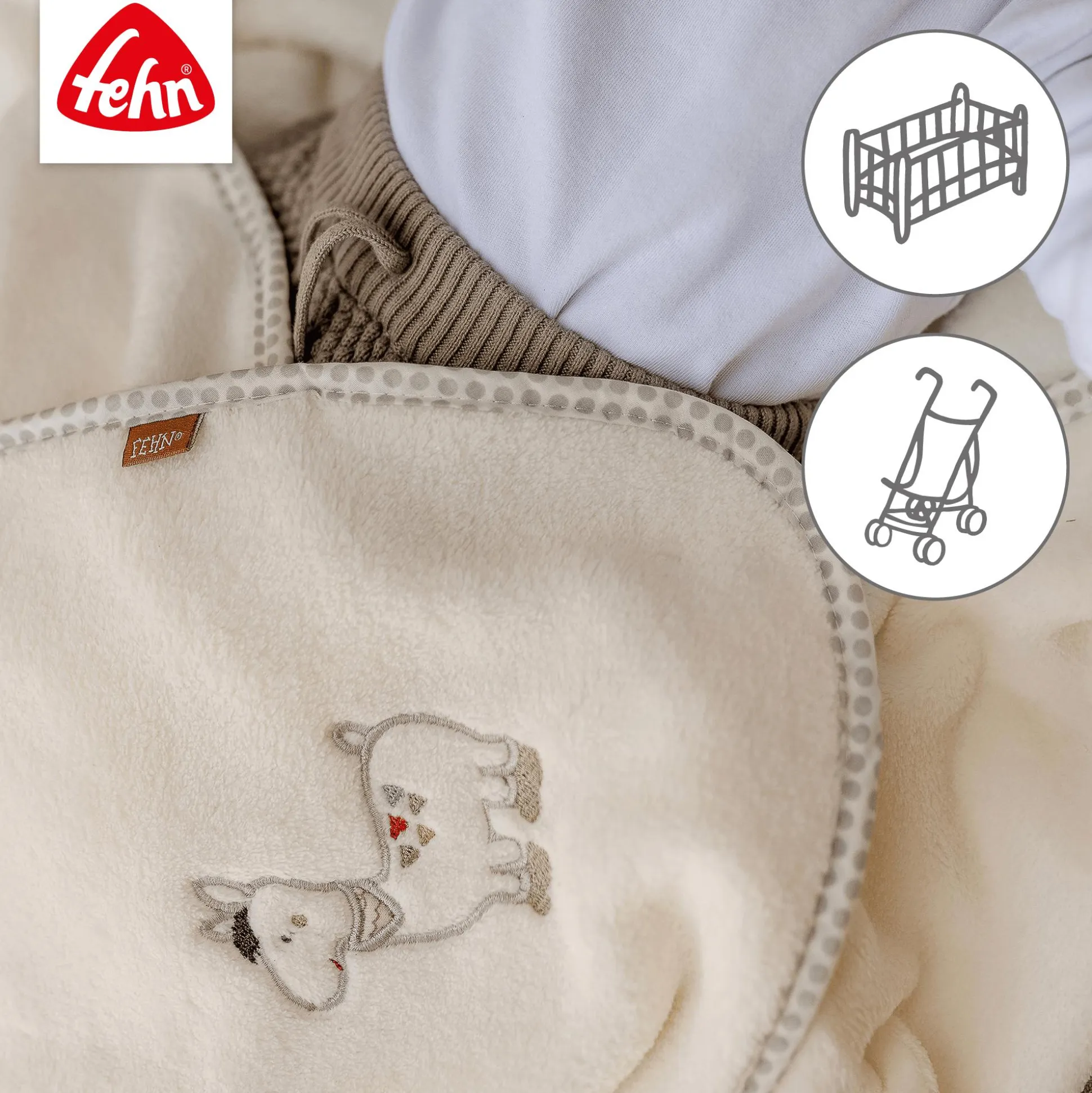 Die 100 x 75 cm große, flauschige fehn Kuscheldecke Lama aus der Peru Kollektion ist ein treuer Begleiter für Groß und Klein. Als Erstlingsdecke eignet sie sich zum Einschlagen im Kinderwagen oder der Babyschale, als Krabbelunterlage oder Einlage im Laufstall sowie zum Zudecken, Kuscheln und Schmusen – diese Decke ist Schnuffeltuch, Seelentröster und Kuschelfreund in einem.