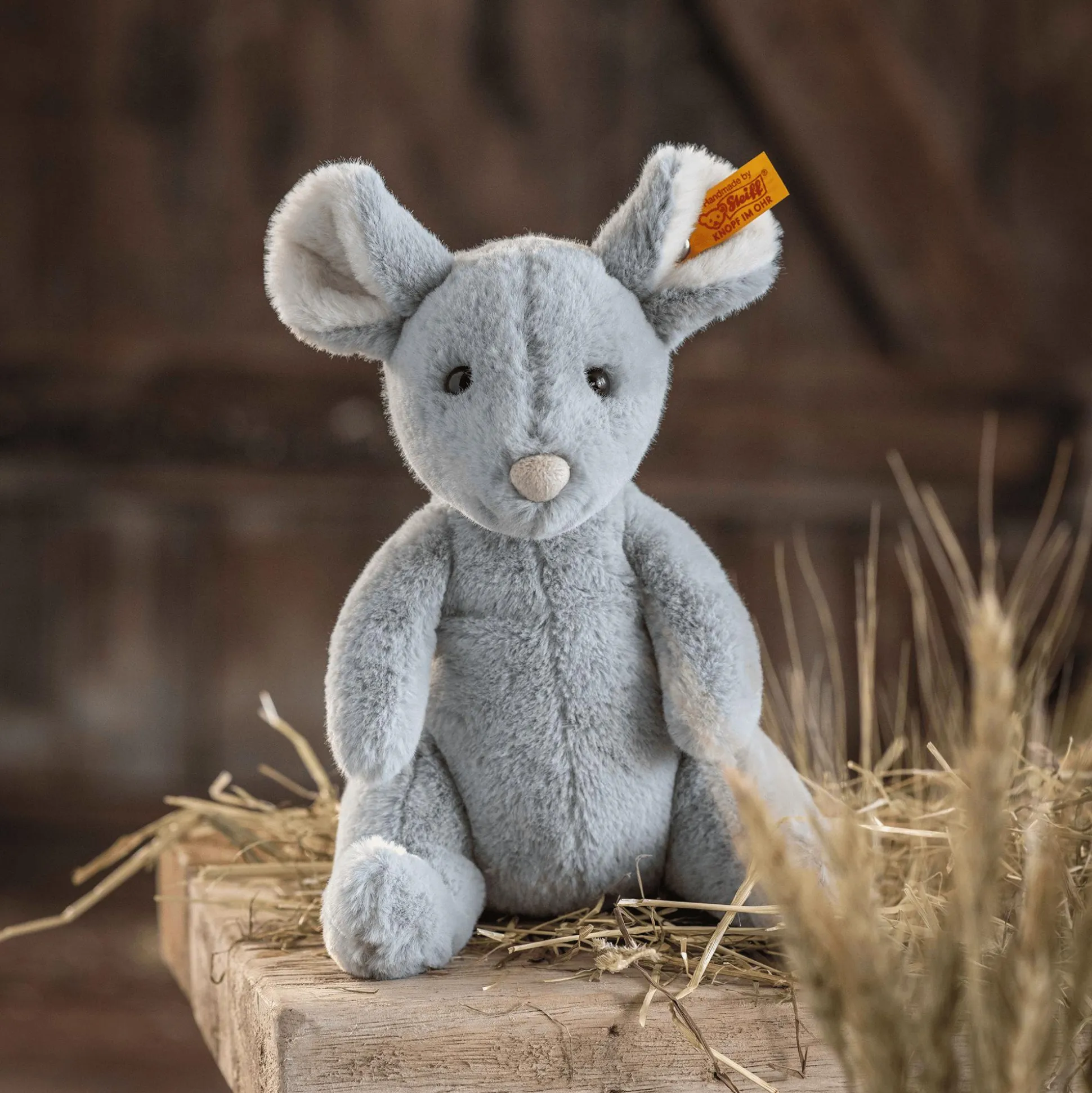Kuscheltier Cheesy Maus von Steiff – die kleine Maus zum Liebhaben! Mit ihrem anschmiegsamen, hellgrauen Plüsch und der niedlichen Haltung, als würde sie nach einem Stück Käse fragen, erobert Cheesy die Herzen im Sturm. Sie ist ca. 19 cm groß und perfekt geeignet für kuschelige Momente. Dank des Granulatsäckchens im Hinterteil sitzt sie stabil und sieht immer bezaubernd aus, egal ob sie auf dem Regal oder im Arm deines Kindes sitzt. Durch das Halten und Streicheln von Cheesy Maus wird das taktile Empfinden gefördert. Die weiche Textur lädt dazu ein, sie zu erkunden, was die Feinmotorik der Kleinen unterstützt und sensorische Reize stimuliert. Ein treuer kleiner Freund, der in jedem Kinderzimmer willkommen ist!