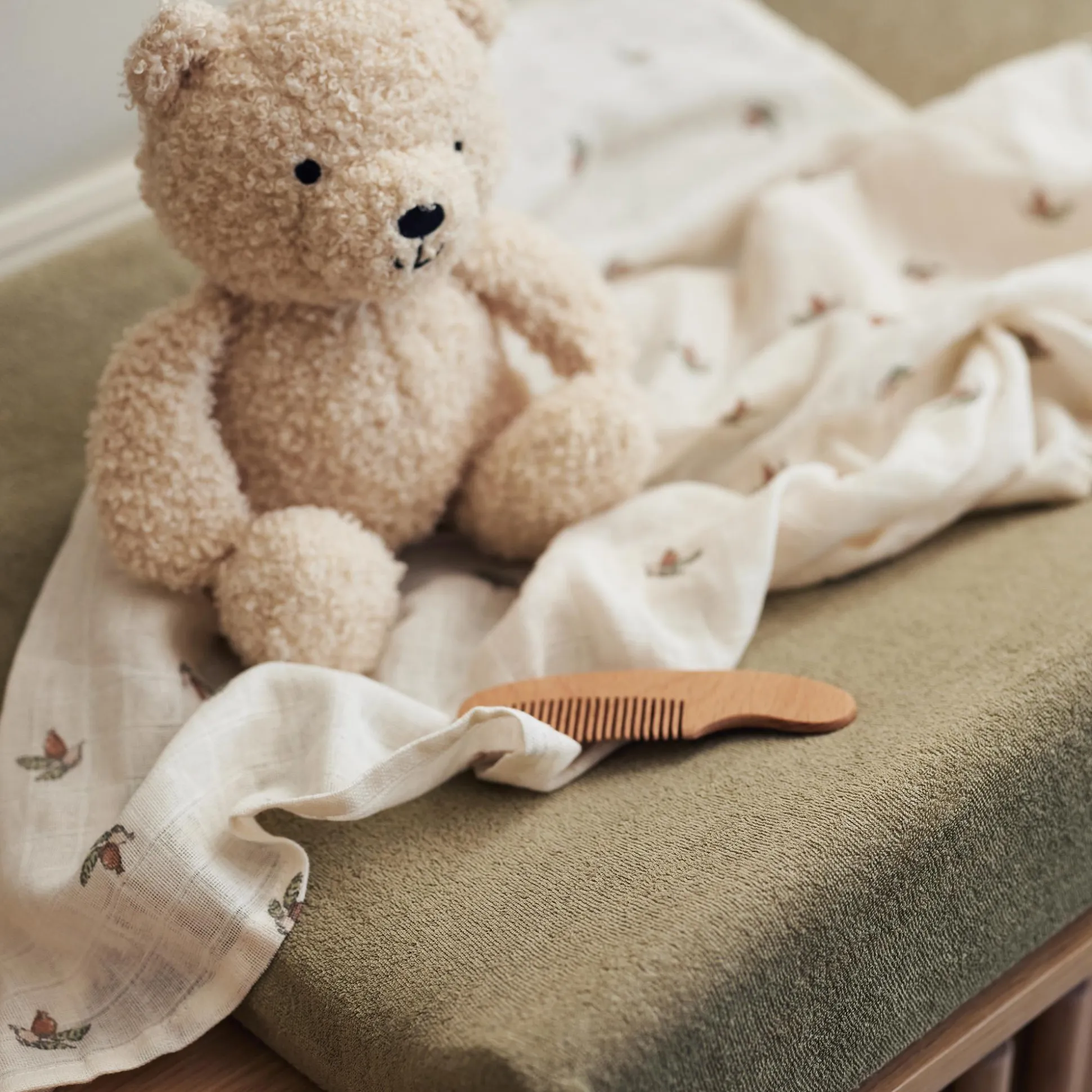 Dieses süße Kuscheltier Teddy Bear von Jollein aus super kuscheligem Bouclé wird der beste Freund deines kleinen Lieblings werden. Der Teddybär lässt sich leicht an den Armen oder Beinen festhalten. Ob zum Spielen, als kleiner Tröster oder zum Erzählen aller Kindheitsgeheimnisse – der Bär ist für dein Kind da! Da er stabil sitzt und nicht leicht umkippt, eignet er sich auch sehr gut als schönes Accessoire im Regal oder auf dem Wickeltisch im Babyzimmer.