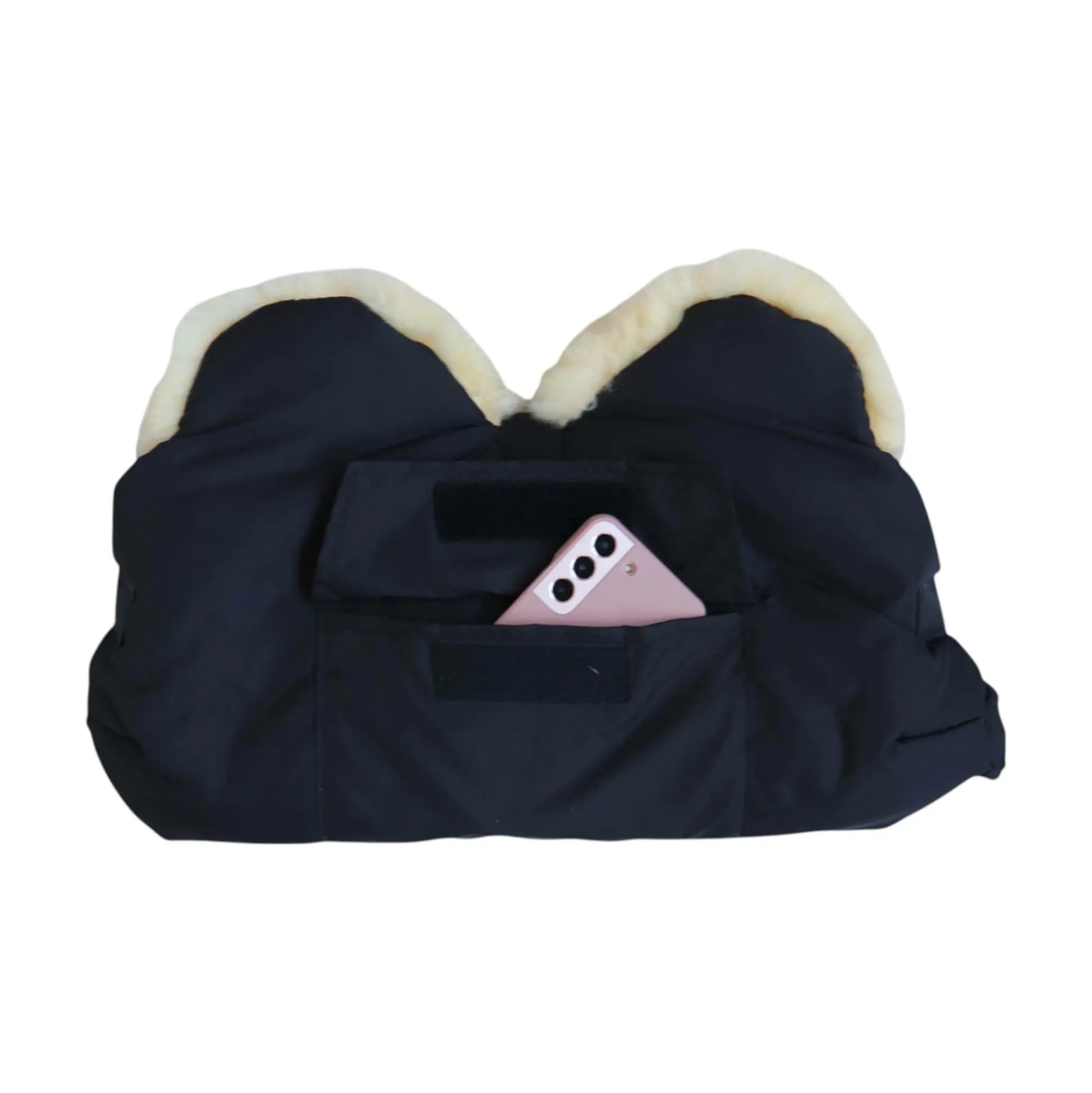 Der Lammfell-Handwärmer BIG in elegantem Schwarz von KAISER Naturfelle ist dein treuer Begleiter auf jeder Spazierfahrt – egal ob Schneesturm, Nieselregen oder Windböe. Einfach mit dem cleveren Klettverschluss an der Schiebestange des Kinderwagens befestigen, Hände reinstecken und sofort hast du es kuschelig warm.