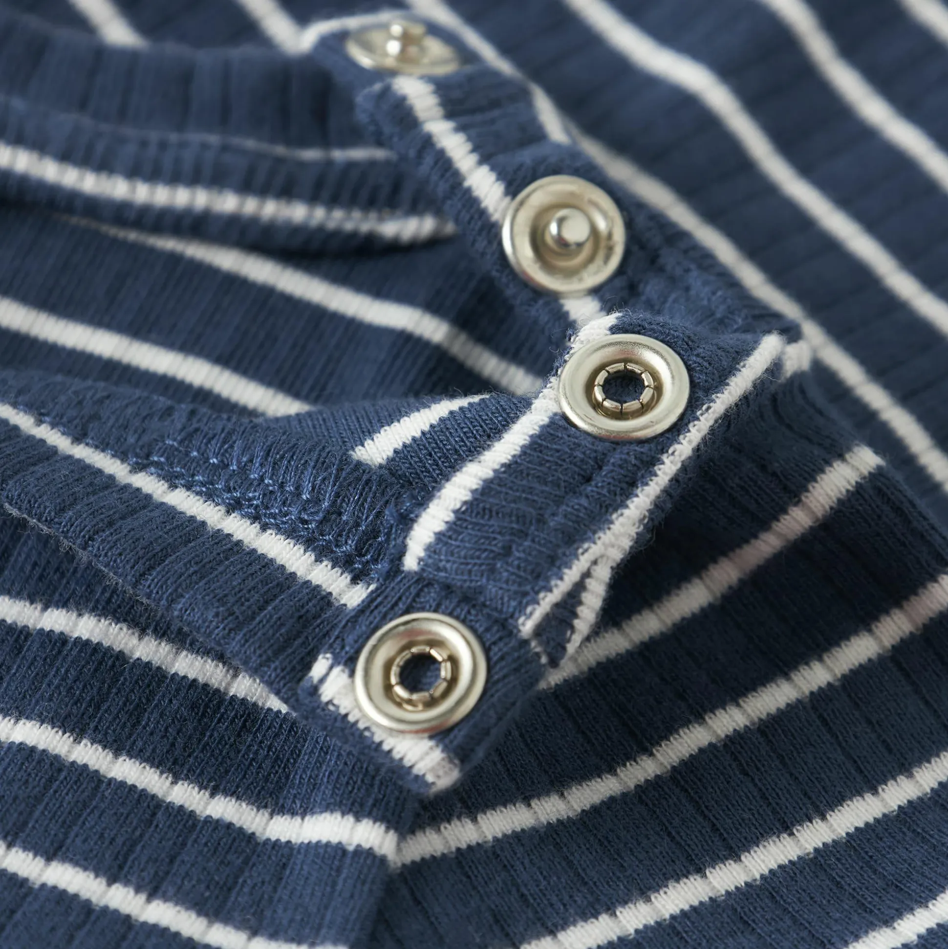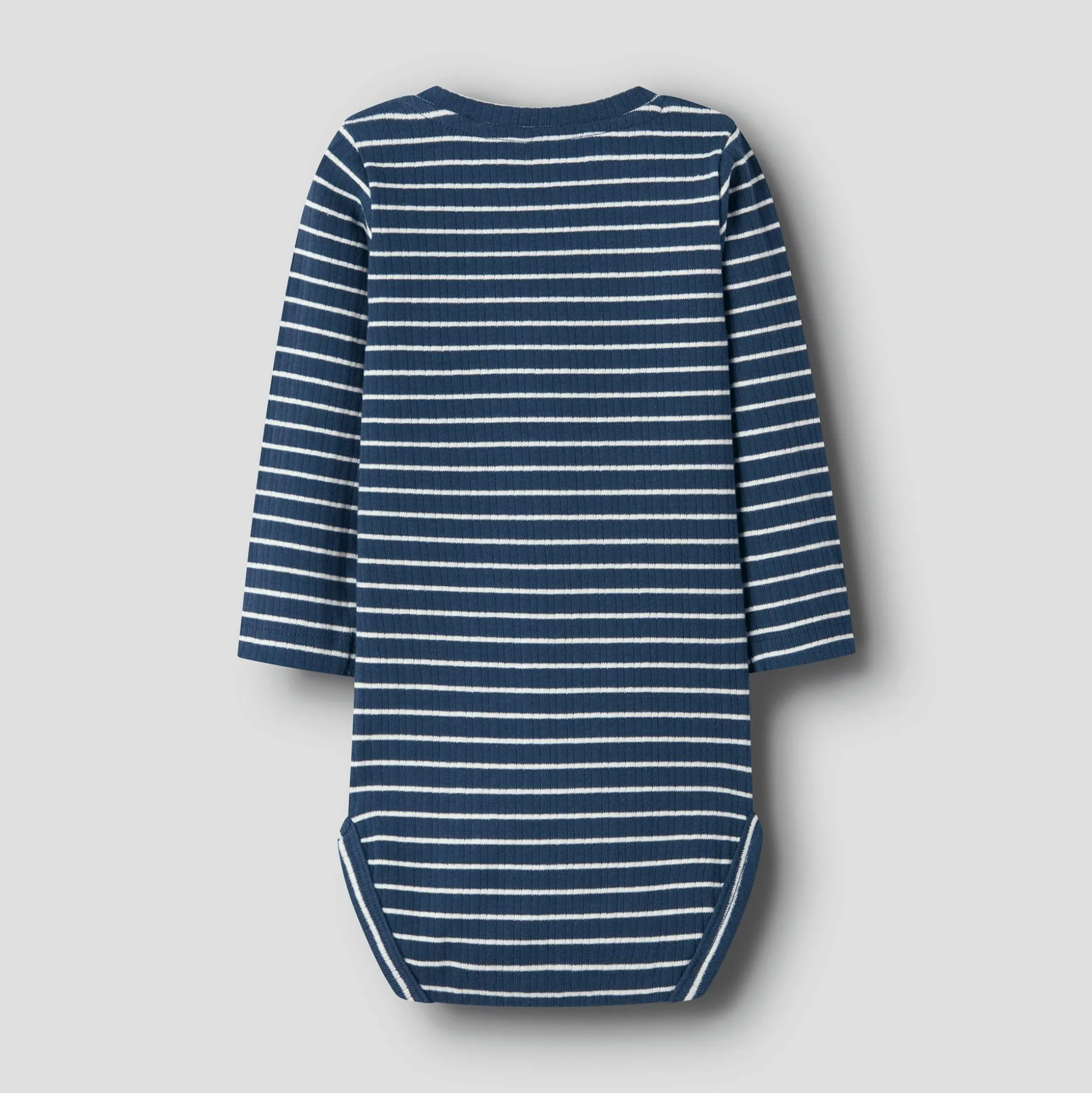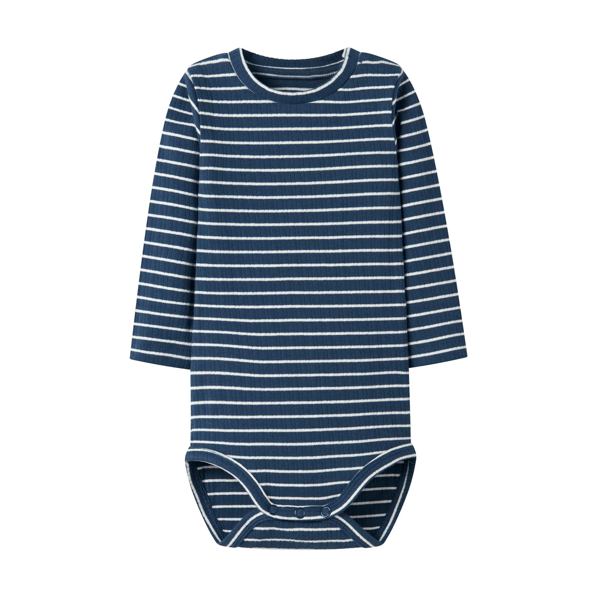 Der Langarmbody von name it ist der perfekte Begleiter für deinen kleinen Schatz an kühlen Tagen. In einem charmanten dunkelblauen Streifenmuster gehalten, bringt er nicht nur Farbe ins Spiel, sondern auch jede Menge Komfort und praktische Funktionen.