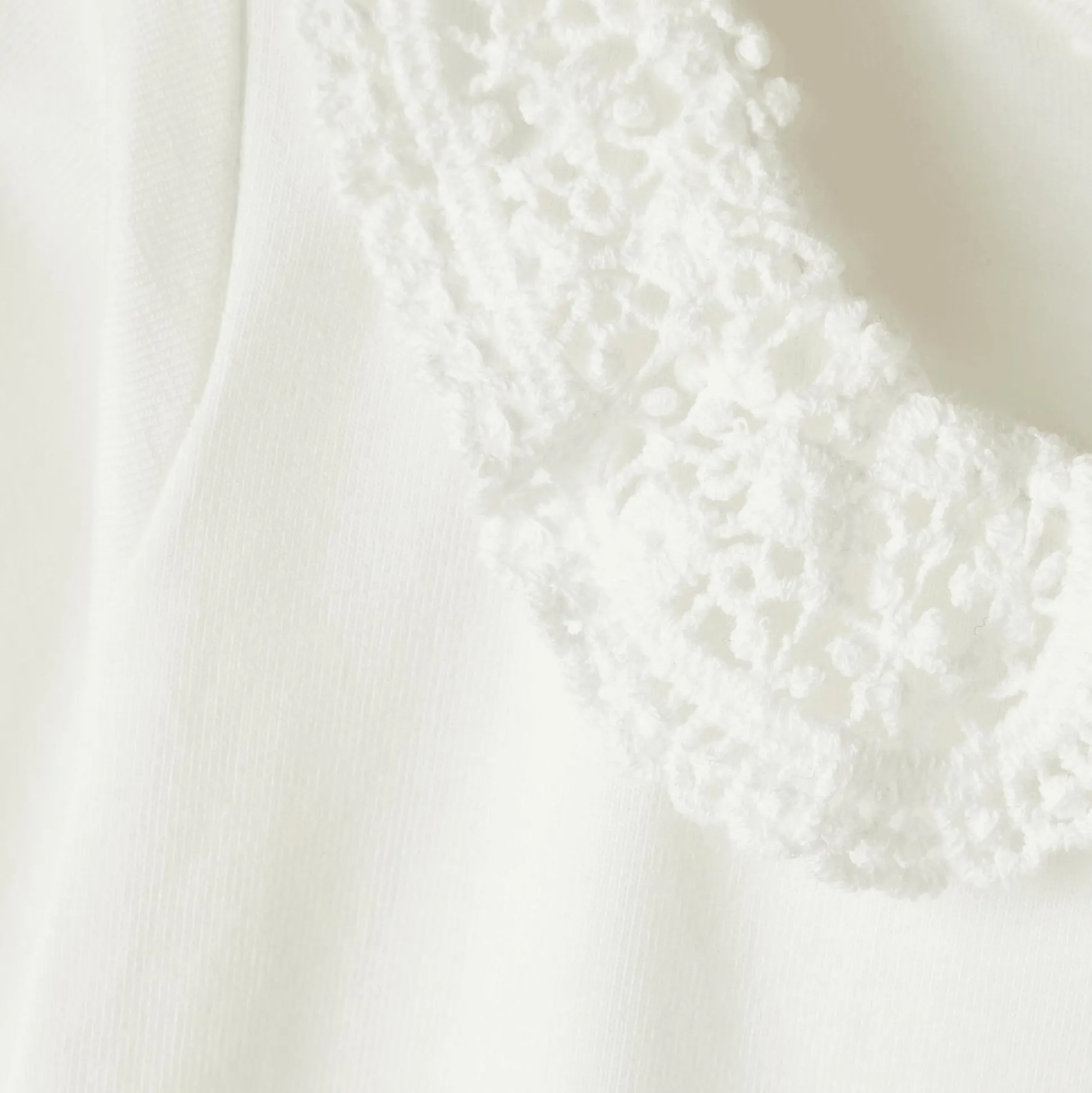 Bring neues Leben in die Garderobe deines Kindes mit zeitlosen und bequemen Basics für jeden Anlass und jede Saison. Der süße Body mit Spitze besteht aus 95% Bio-Baumwolle und 5% Elasthan. Der leichte und dehnbare Stoff hat eine weiche Außen- und Innenseite und sorgt für ein angenehmes Tragegefühl und Bewegungsfreiheit.