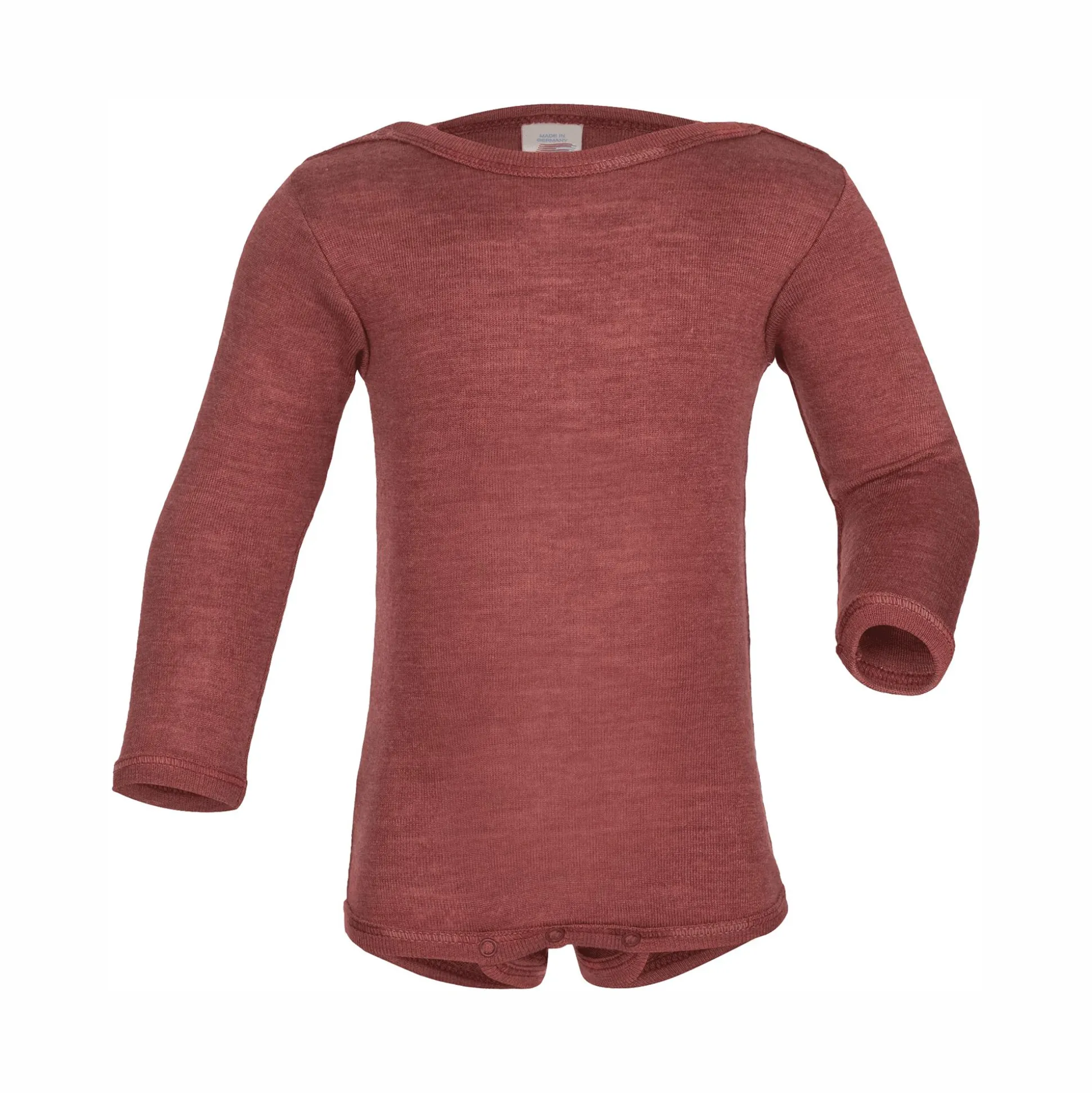 Der weiche Langarmbody von ENGEL besitzt lange Ärmel und besteht zum größten Teil aus Merinoschurwolle aus kontrolliert biologischer Tierhaltung. Die Wolle des Merinoschafs ist anschmiegsam weich und hält mollig warm. Das Material ist außerdem GOTS zertifiziert.