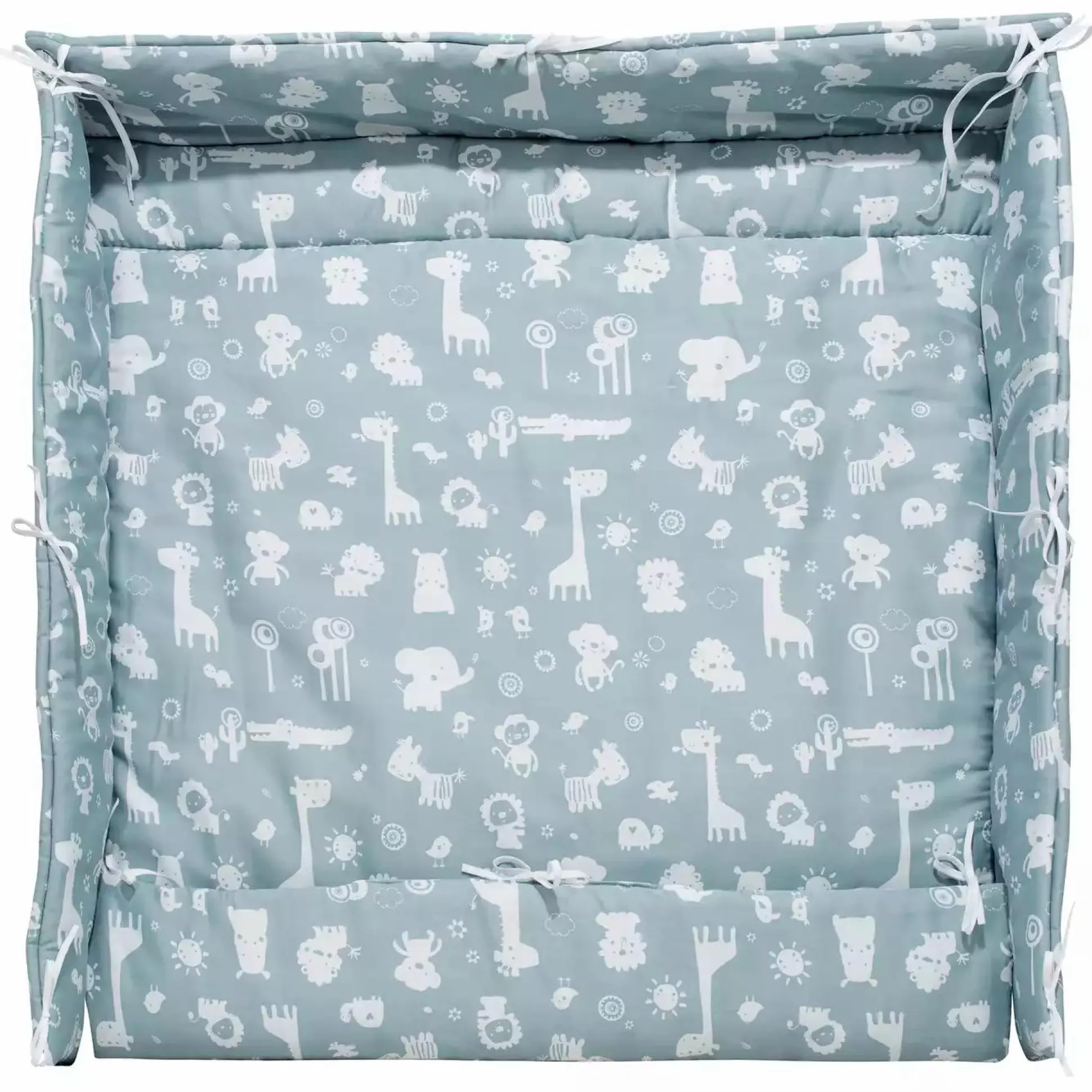 Die Alvi Laufgittereinlage Zootiere puderblau sorgt für ein tierisches Durcheinander. Auf dieser weich gepolsterten Liegefläche können die Allerkleinsten richtig spielen und toben. Bauschige Hohlfaser im Inneren sorgen für höchsten Komfort. Über die Bindebänder kann die Laufgittereinlage von Alvi am Gitter befestigt werden. Somit wird ein Verrutschen verhindert und auch spielende Kinder können sich die Einlage nicht über das Gesicht ziehen. Praktischerweise ist die Laufgittereinlage Zootiere passend für in 70 x 100 cm oder 100 x 100 cm designt. Gewaschen werden kann diese in der Waschmaschine und ist trocknergeeignet.