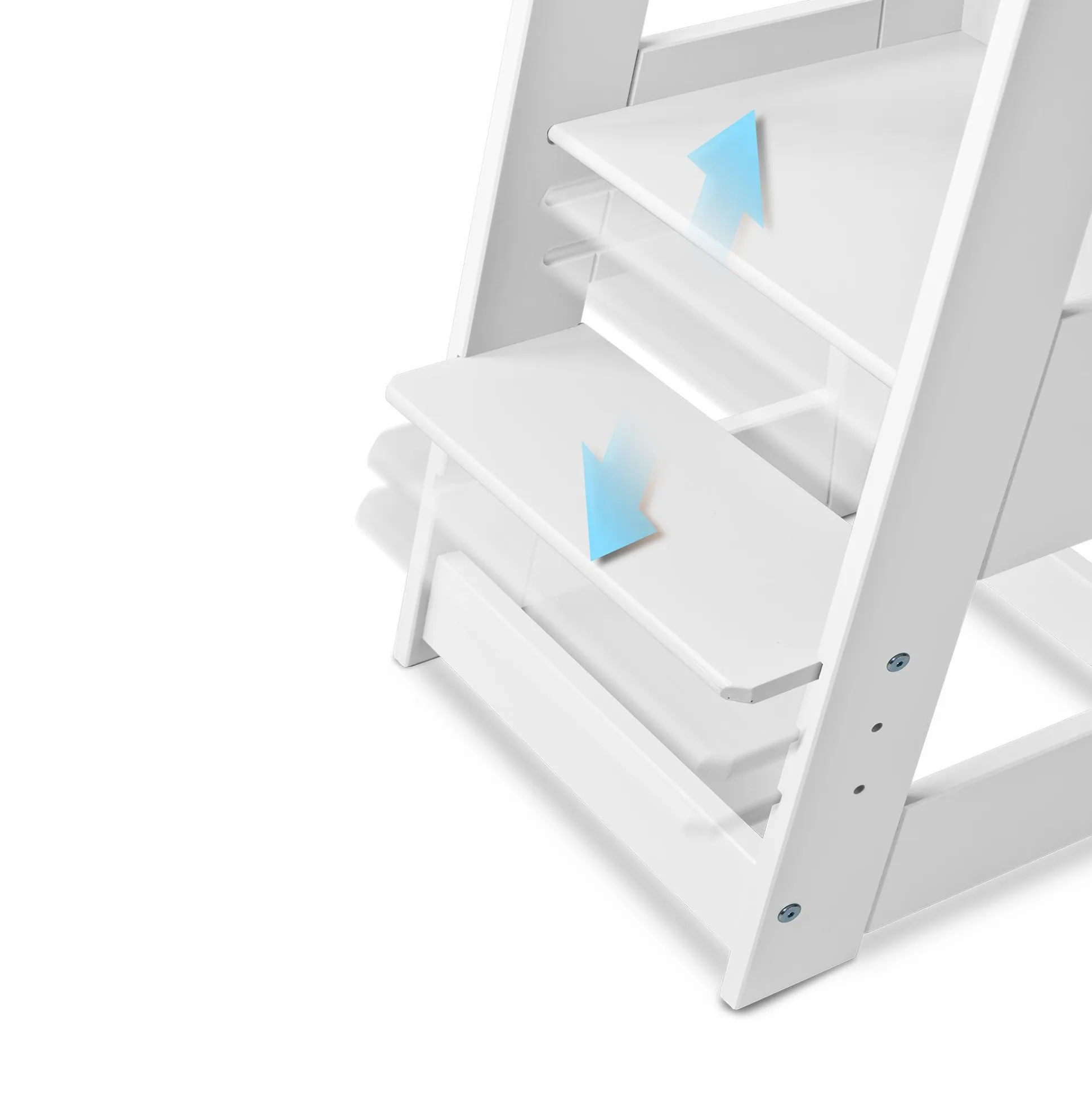 Der Lernturm Felix von tiSsi® ist ein spannender Entdecker-Turm, der mit deinem Kind mitwächst. So können schon die Kleinsten auf Augenhöhe mit an der Küchenarbeitsplatte stehen und beim Kochen helfen. Dank dem höhenverstellbaren Stand- und Fußbrett kannst du den Turm mit wenigen Handgriffen ganz einfach an die Größe deines Kindes anpassen. Der ist einfach montierbar, extrem kippsicher zu allen Seiten und besonders ergonomisch entwickelt. Er bietet Kindern von ca. 1 – 4 Jahren angemessene Bewegungsfreiheit und ist mit einer Tragfähigkeit von bis zu 250 kg der perfekte Begleiter bis ins Jugendalter.