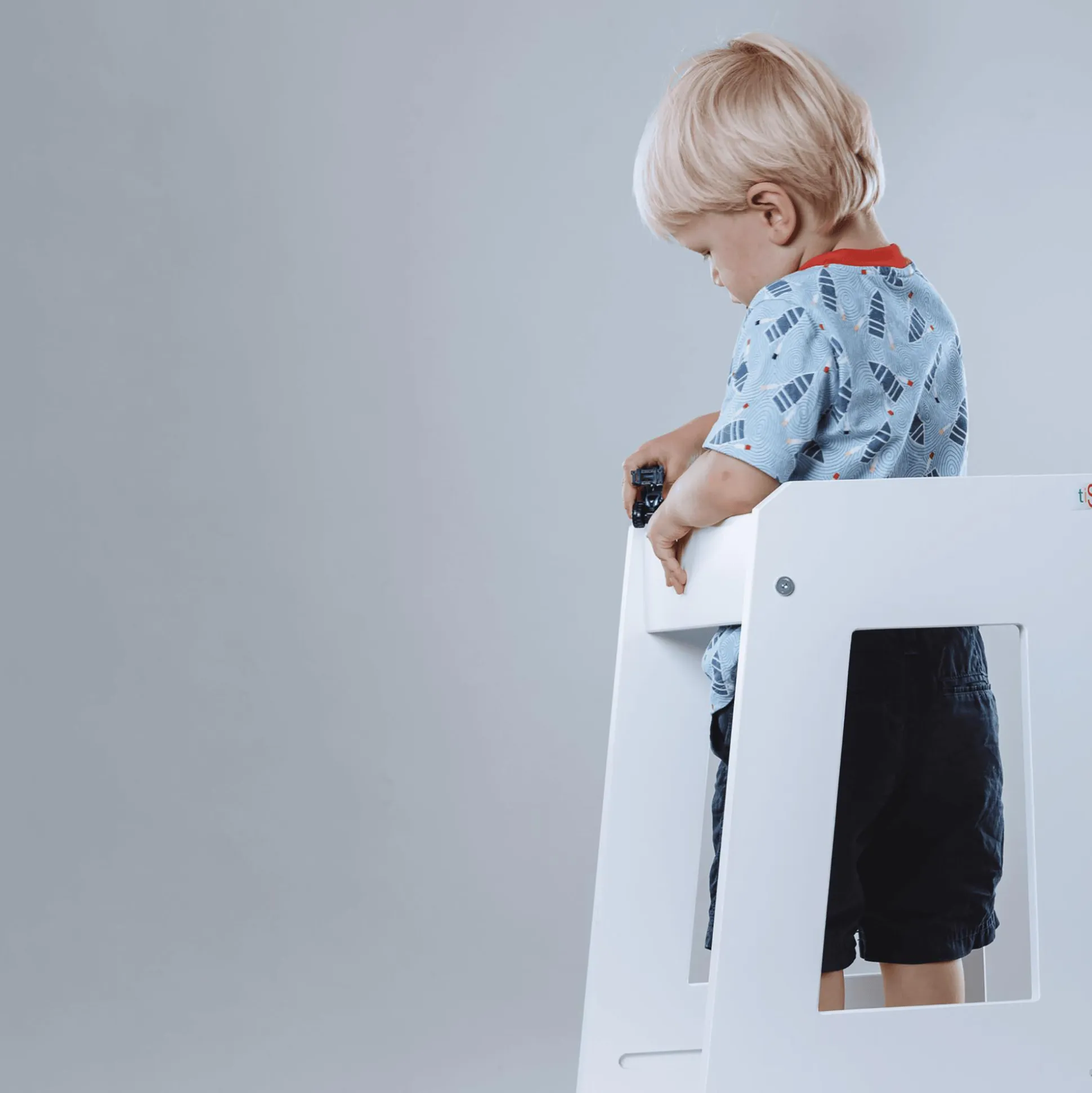 Der Entdeckerturm von tiSsi® hebt dein Kind auf die optimale Position an. Dieser wurde so konzipiert, dass dein Kind näher beim Arbeiten in der Küche oder am Tisch dabei sein kann und so schon früh soziale Interaktionen mitbekommt und von dir lernen kann. Wenn dein Kind dir beim Kochen hilft, kann es eine noch engere Bindung aufbauen sowie bessere sprachliche und soziale Fähigkeiten entwickeln.