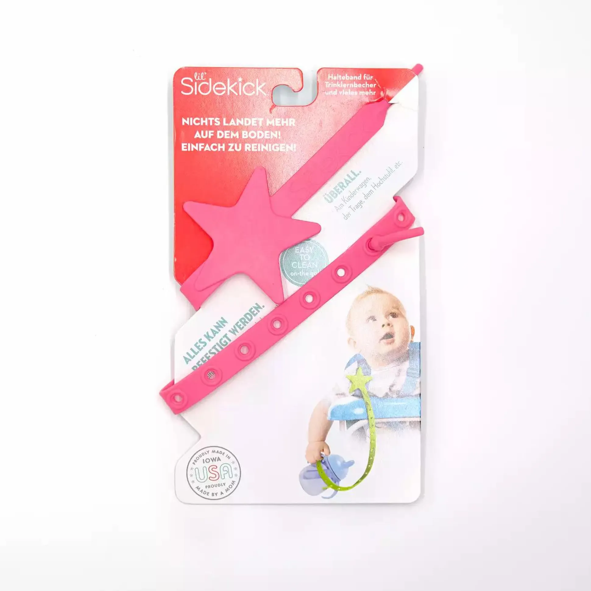 Nichts landet mehr auf dem Boden. Mit den multifunktionalen Anwendungsmöglichkeiten um verschiedenste Dinge zu halten ist der Lil’Sidekick ein echtes Allround-Talent. Du kannst ihn verwenden um Löffel, Trinklernbecher und Kuscheltiere zu befestigen oder du benutzt ihn einfach am Kinderwagen, an der Trage oder am Hochstuhl. Dieses Halteband ist einfach zu handhaben und zu reinigen.