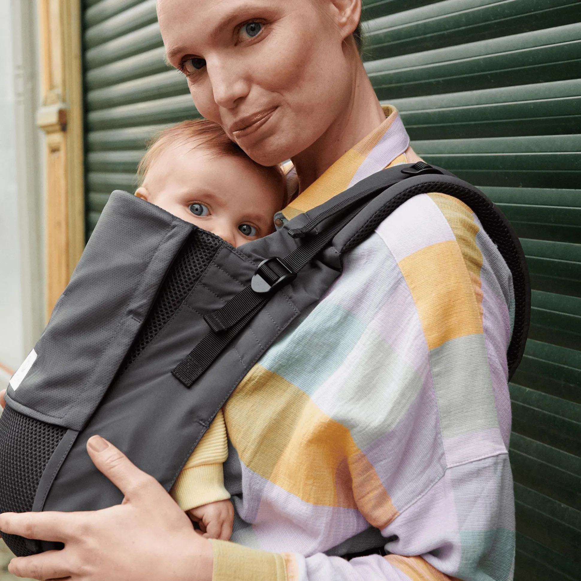 - atmungsaktives, anschmiegsames Mesh-Material spendet dir und deinem Baby Komfort