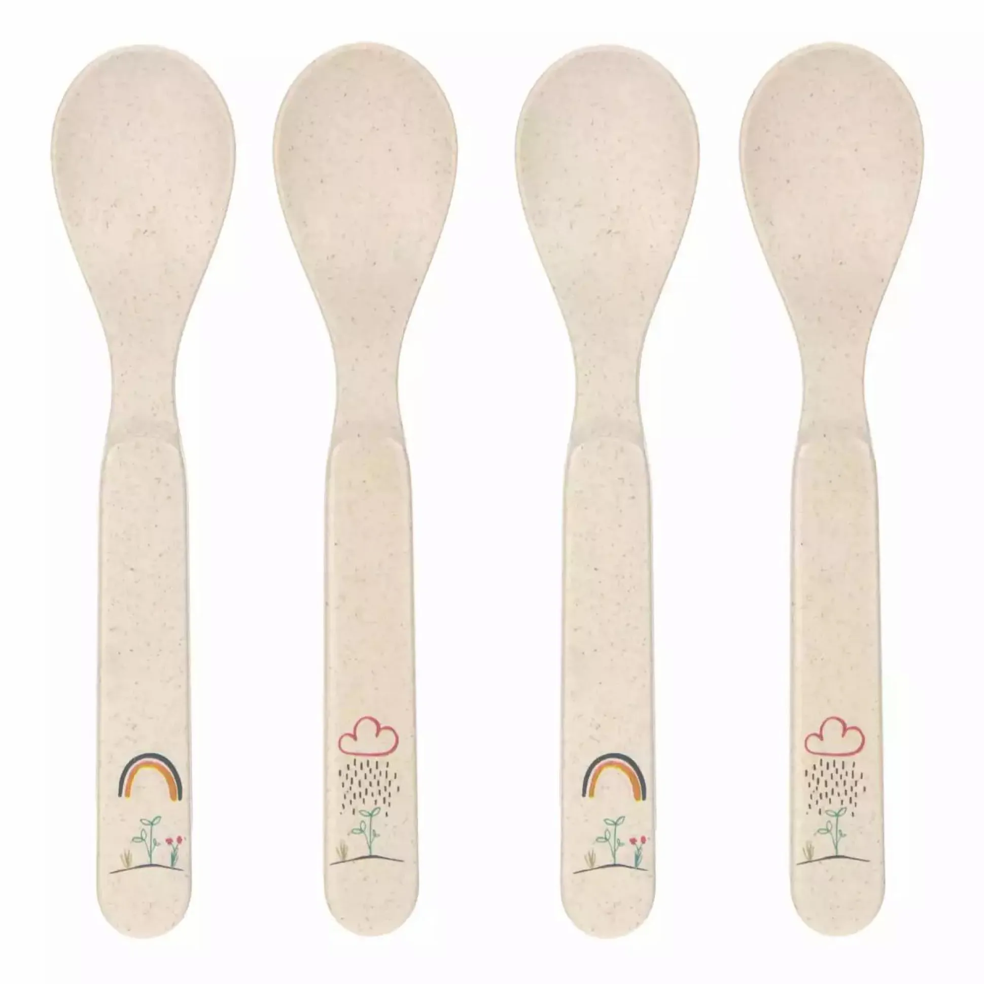 Die vier Löffel sind BPA-frei, leicht sowie mikrowellen- und spülmaschinengeeignet. Niedliche Blumen und süße Wolken verzieren die Griffe der Löffel. Die Löffel animieren deinen kleinen Schatz zum eigenständigen Essen und sind die perfekte Ergänzung zum restlichen Geschirr aus der Garden Explorer Kollektion.