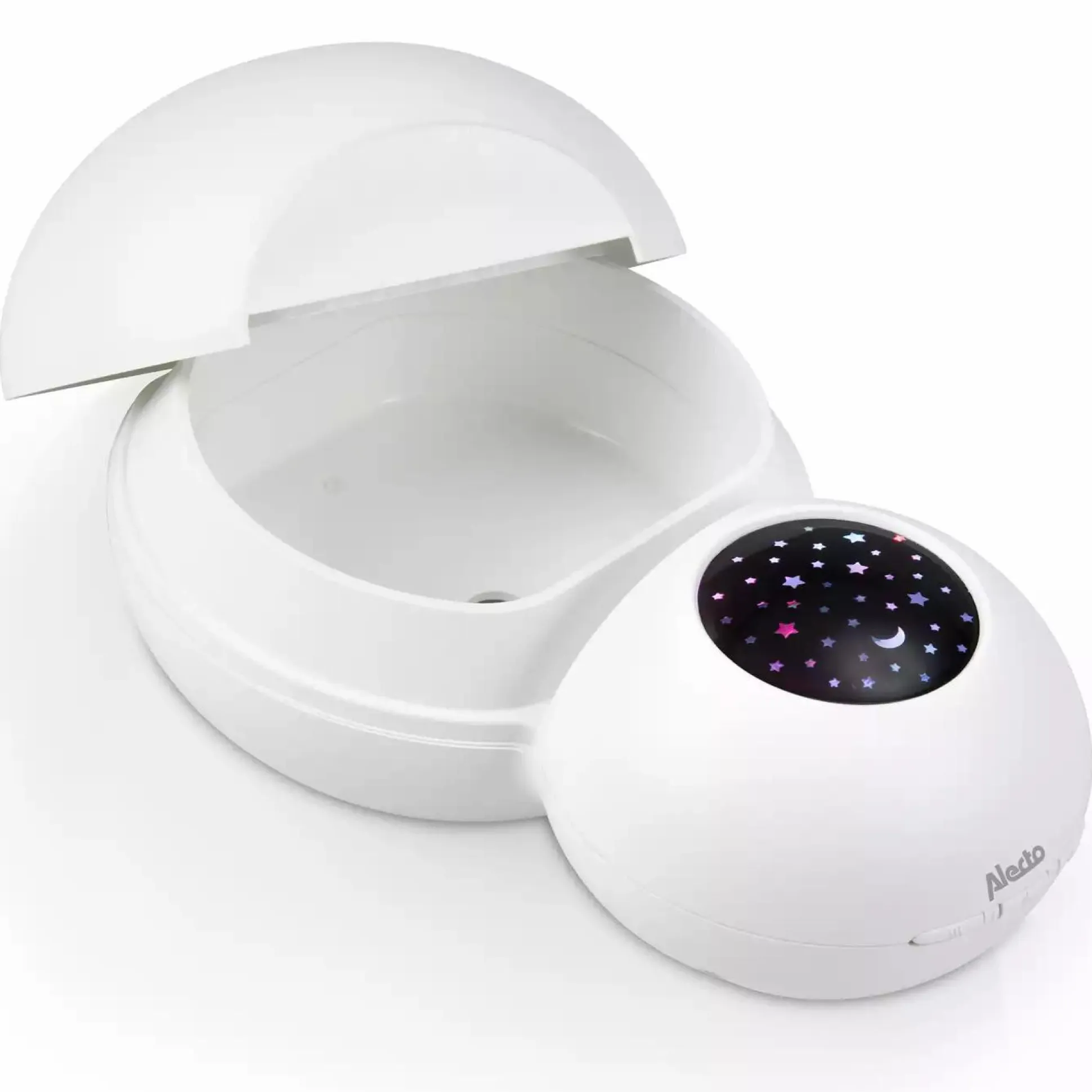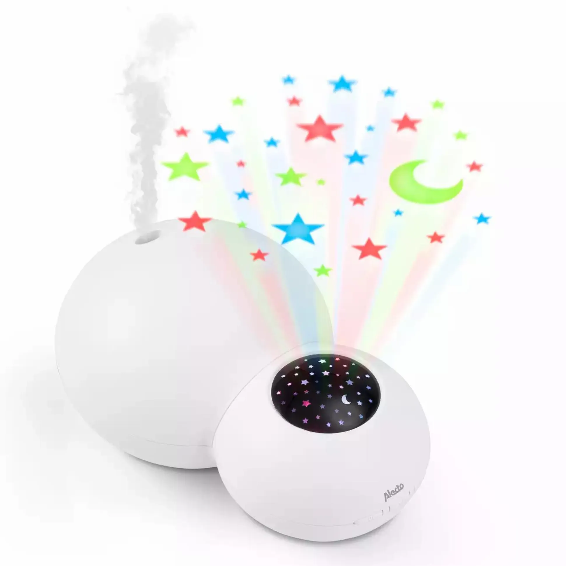 Der und Projektor von Alecto baby sorgt mit seiner besonderen Ultraschall/Kühldampf-Technologie für eine optimale Luftfeuchtigkeit im Kinderzimmer. Gleichzeitig wird dank dem Sternhimmelprojektor eine wundervolle Schlafatmosphäre kreiert.