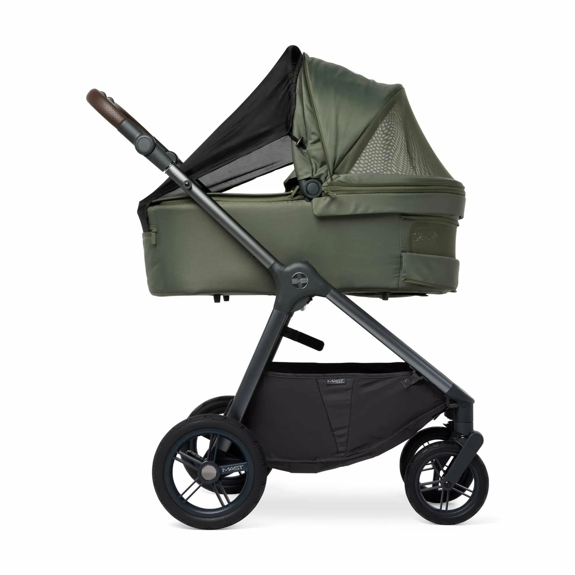 Der M.5x im Design Green von Mast erfüllt all eure Wünsche. Ein Allrounder mit Allradfederung, Babywanne, Sitz und einer Vielzahl an Funktionen, die euch jeden Ausflug erleichtern.