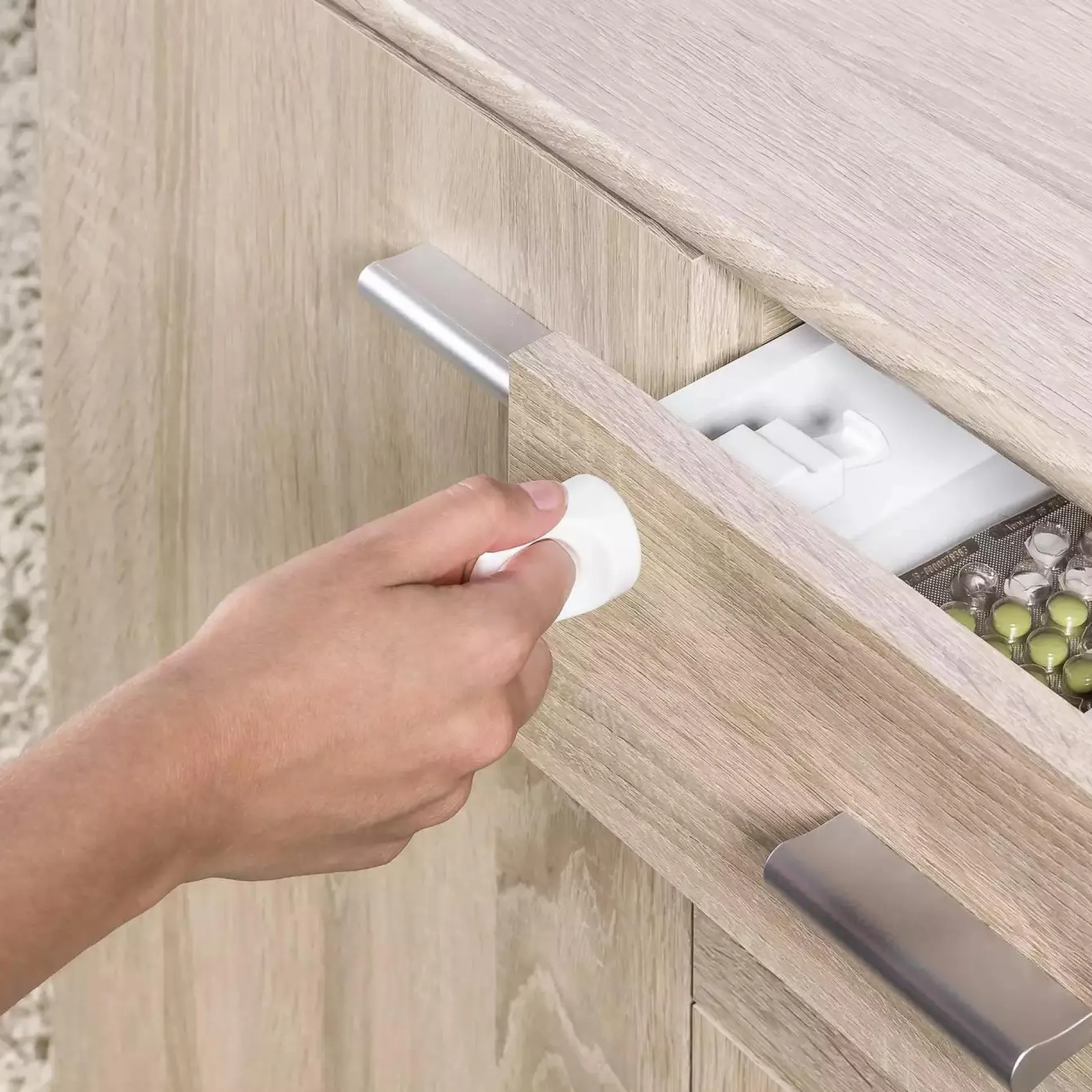 Das Magnetschloss von reer hält kleine Kinderhände von gefährlichen Schrankinhalten fern. Die Befestigung erfolgt schnell und einfach durch die Klebe- oder Schraubmontage.