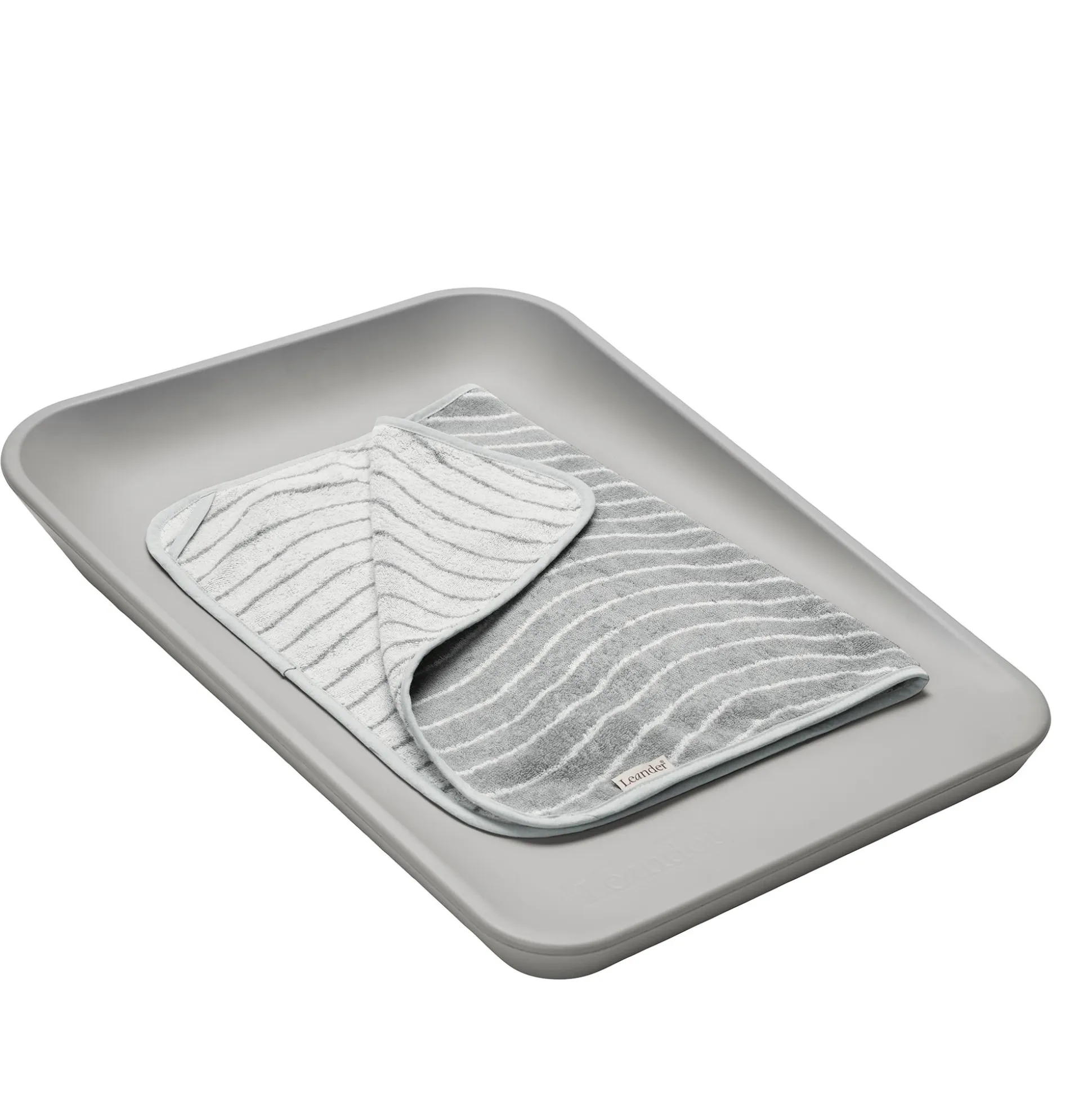 Der Topper Woodland Cool Grey von Leander eignet sich ideal für die Matty Wickelauflage. Die hochwertige Jacquardwebung sorgt für eine ansprechende Optik und bietet zwei unterschiedlich gestaltete Designs.