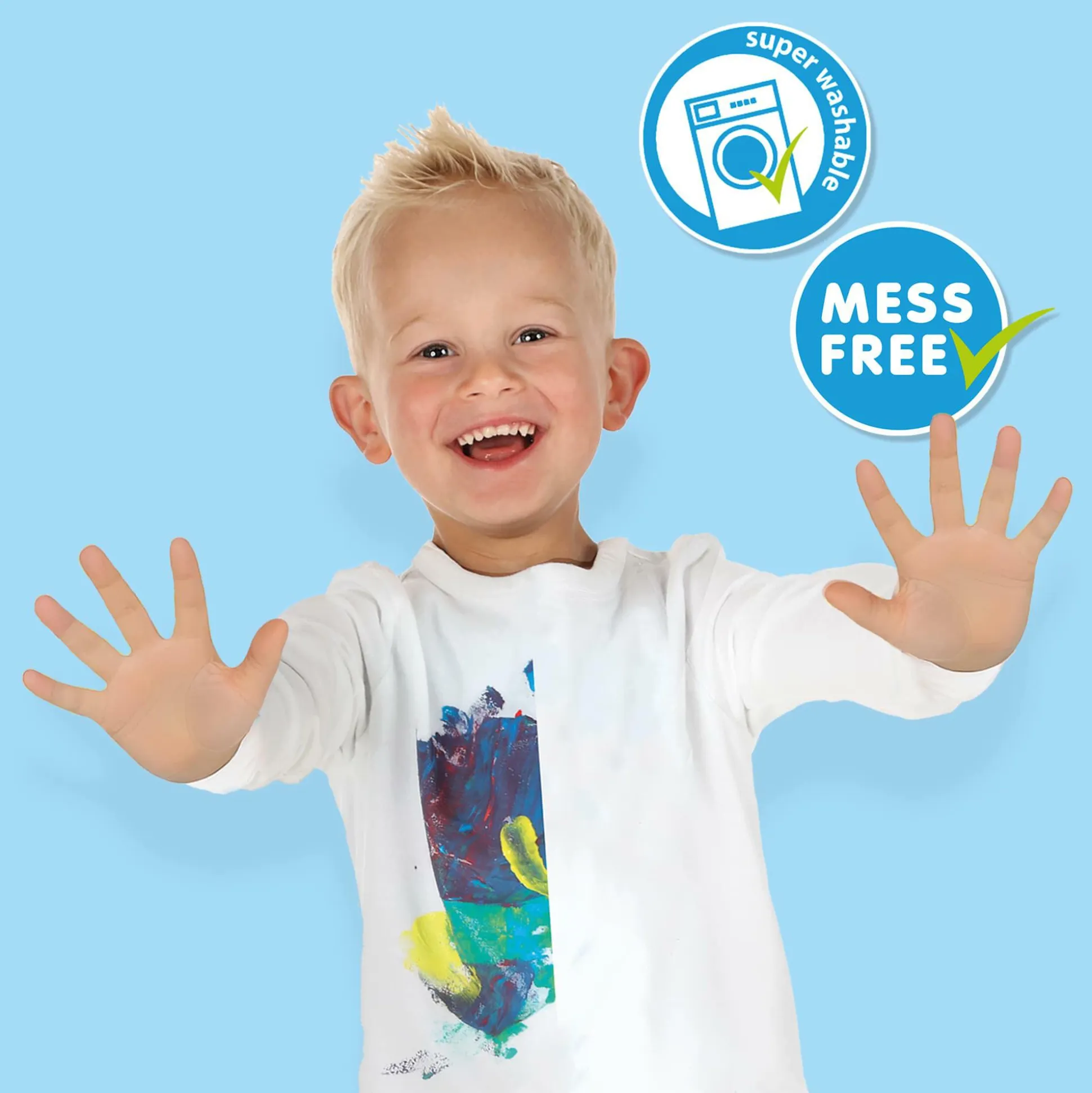 Und für dich ist das Beste: Die Wachsmaler färben nicht auf die Hände ab, sodass alles sauber bleibt und sollte doch einmal ein Strich neben dem Papier landen, ist die Farbe leicht abwaschbar. So kann dein Kind nach Herzenslust experimentieren und die Welt der Farben ganz unbeschwert entdecken.