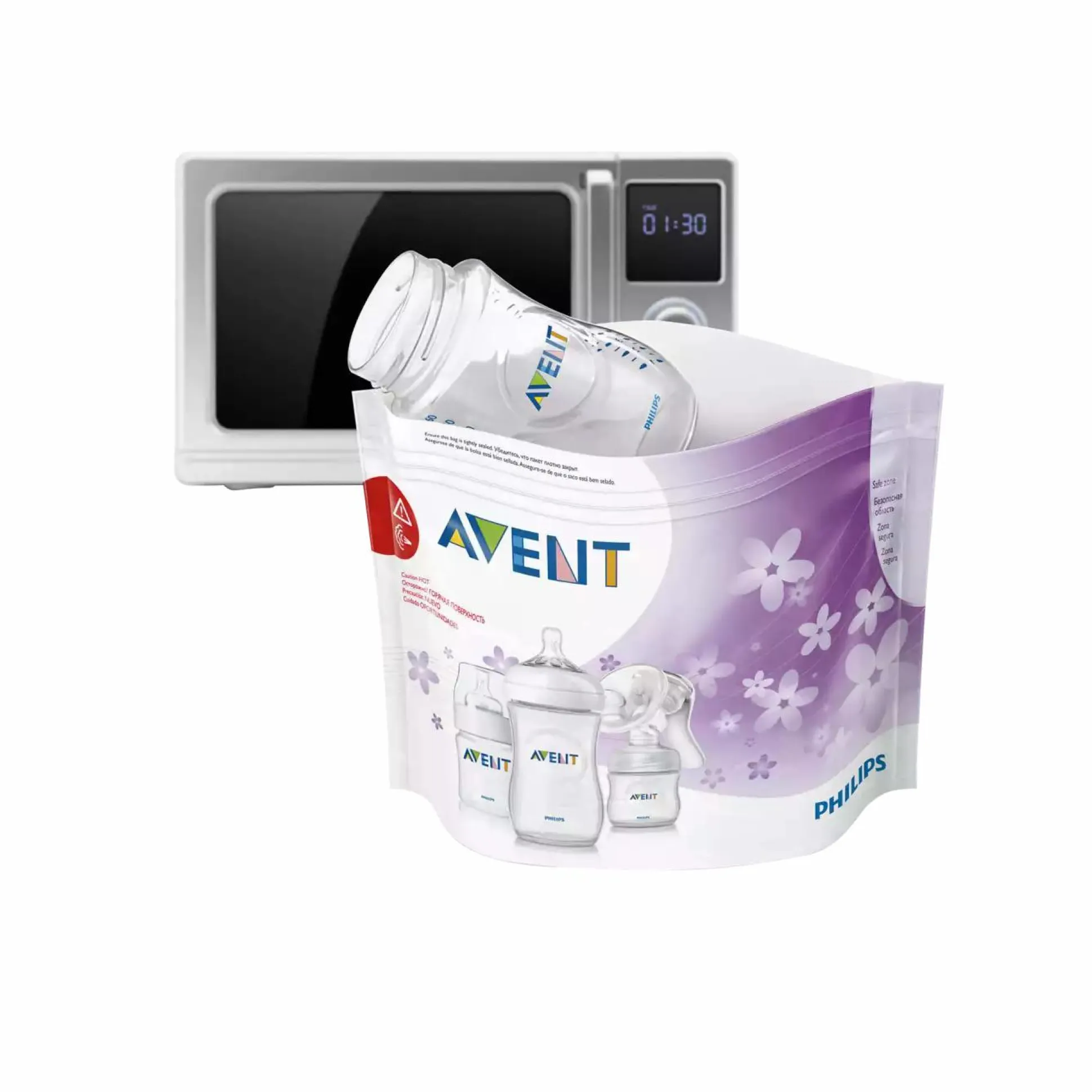 Der praktische Mikrowellen Sterilisationsbeutel von Philips Avent sterilisiert Flaschen, Milchpumpen und andere Babyprodukte in nur 90 Sekunden und tötet effektiv 99,9 % der Bakterien und Keime ab. Der Mikrowellenbeutel zur Dampfsterilisation kann mindestens 20 Mal verwendet werden und eignet sich auch ideal für unterwegs. Klare Schritt-für-Schritt-Anweisungen sind in Form von Piktogrammen auf jedem Beutel angezeigt und macht die Bedienung der Beutel kinderleicht.