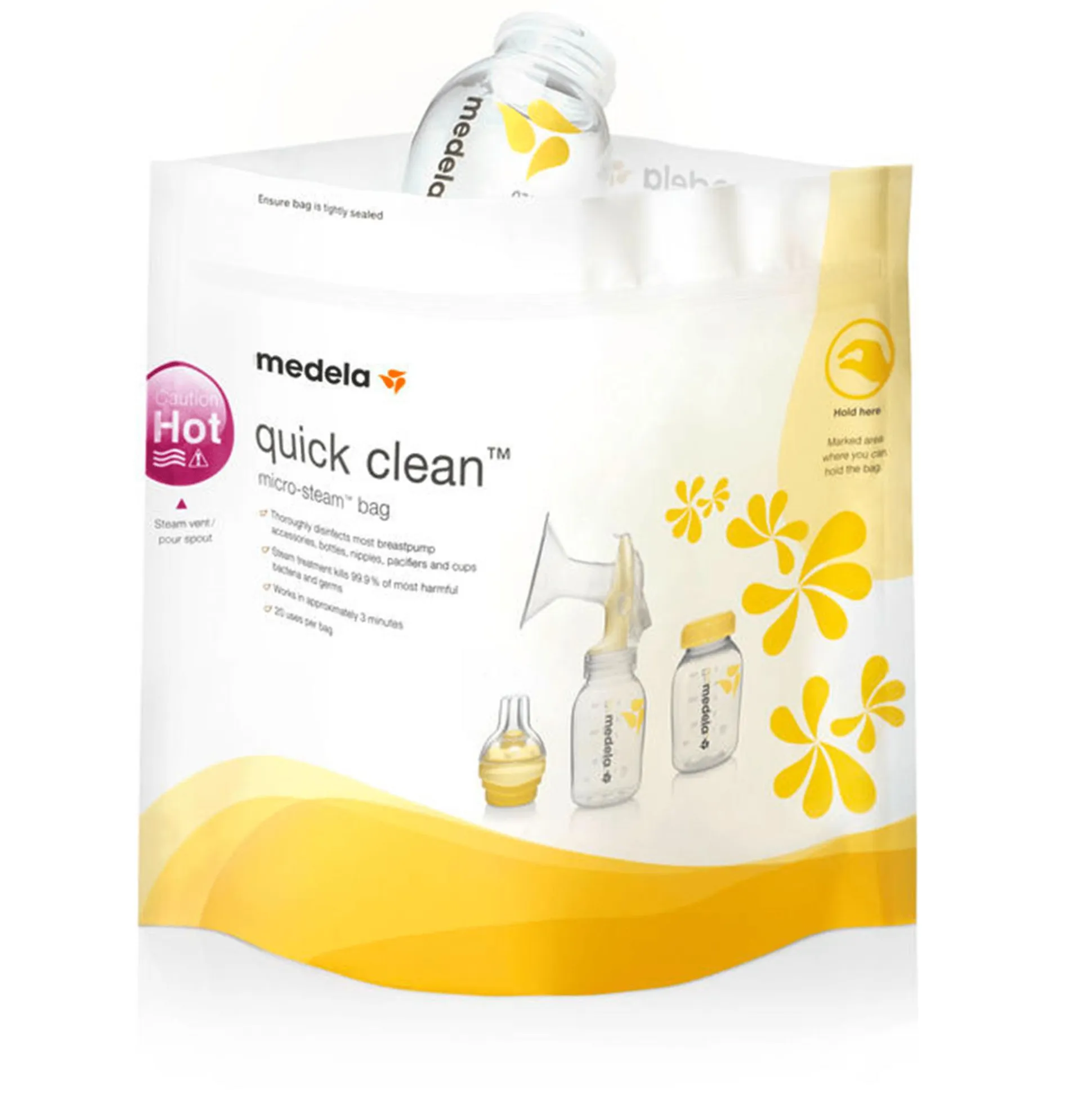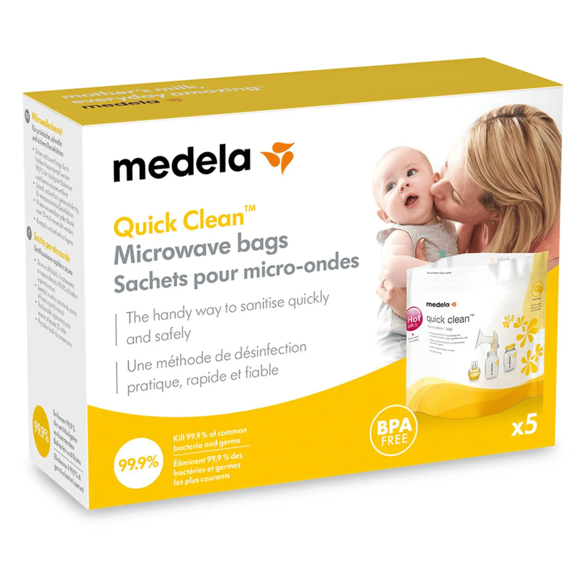 Der Mikrowellenbeutel Quick Clean von Medela desinfiziert deine Flaschen, Sauger und Brusthauben schnell und sicher.