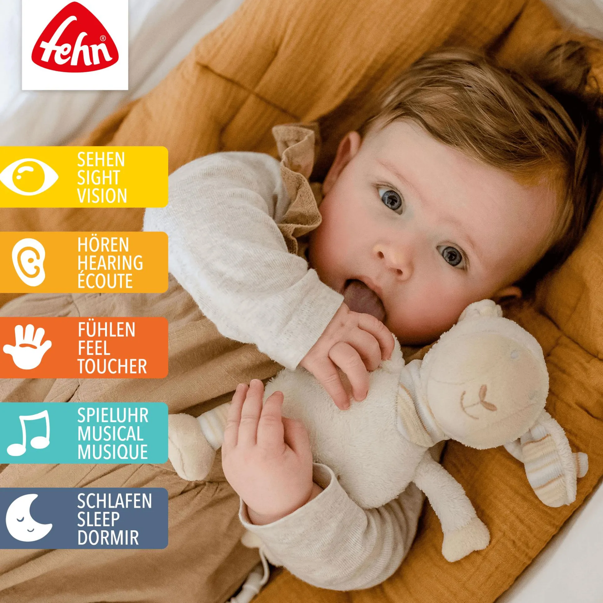 Die Mini-Spieluhr Schaf aus der süßen Baby-Love-Kollektion von Fehn ist aus besonders kuschelweichen Stoffen gearbeitet. Die beruhigende Melodie begleitet das Baby sanft in einen erholsamen Schlaf.