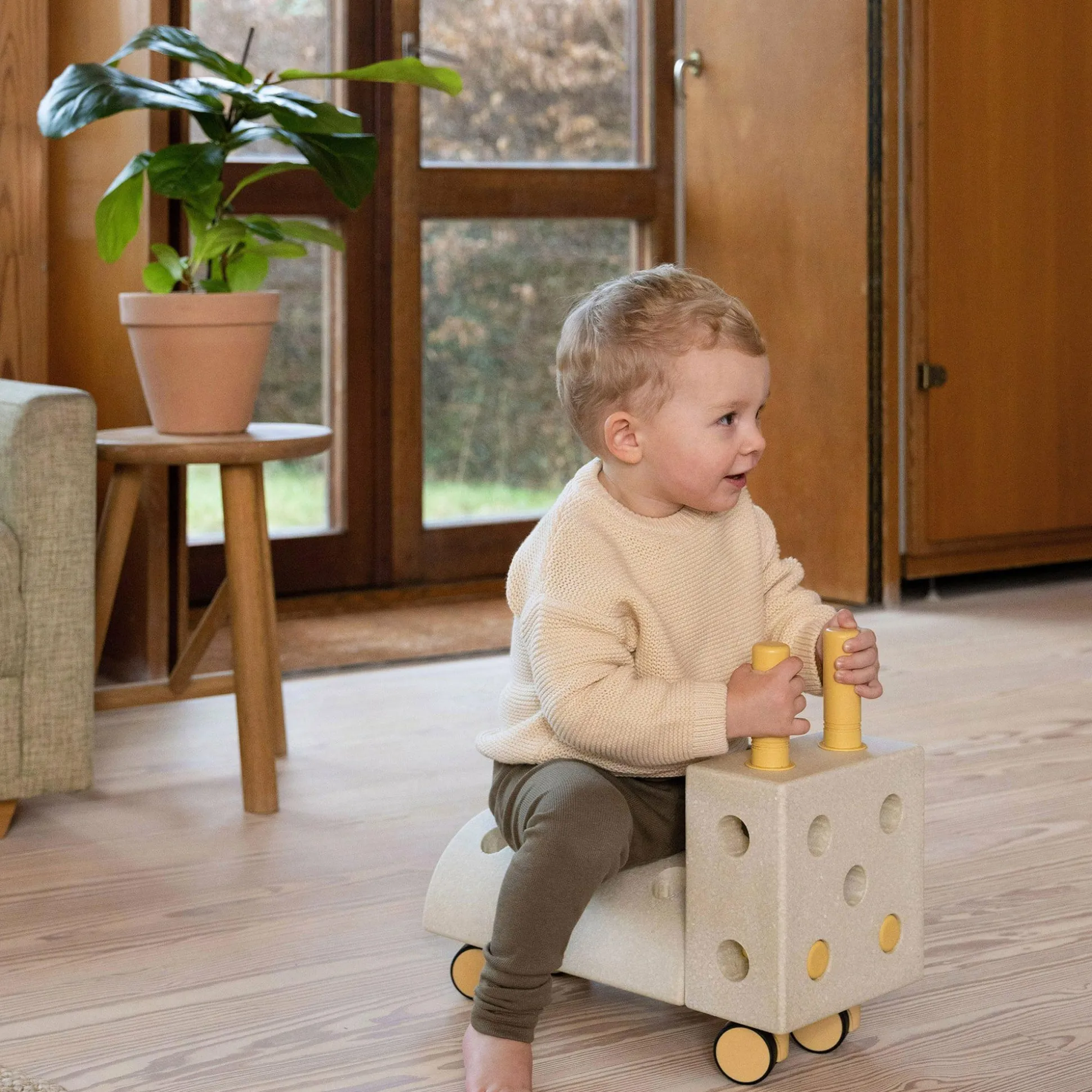 - umbaubar in Balancierbrett, Schaukelpferd oder Rutschauto