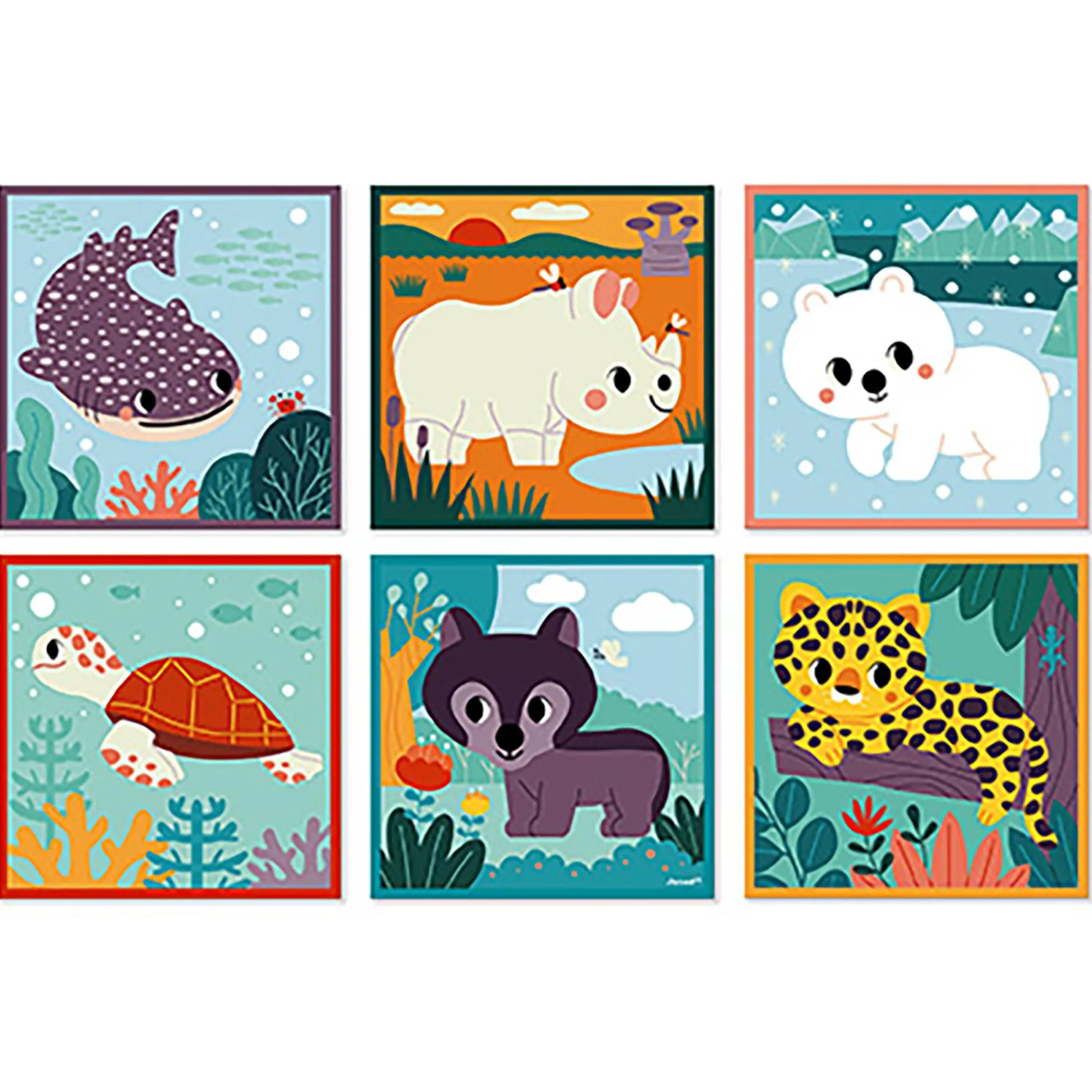 - mit 6 Tieren: Nashorn, Jaguar, Walhai, Eisbär, Wolf und Schildkröte