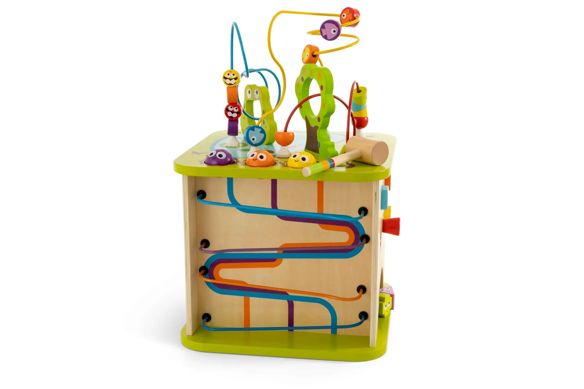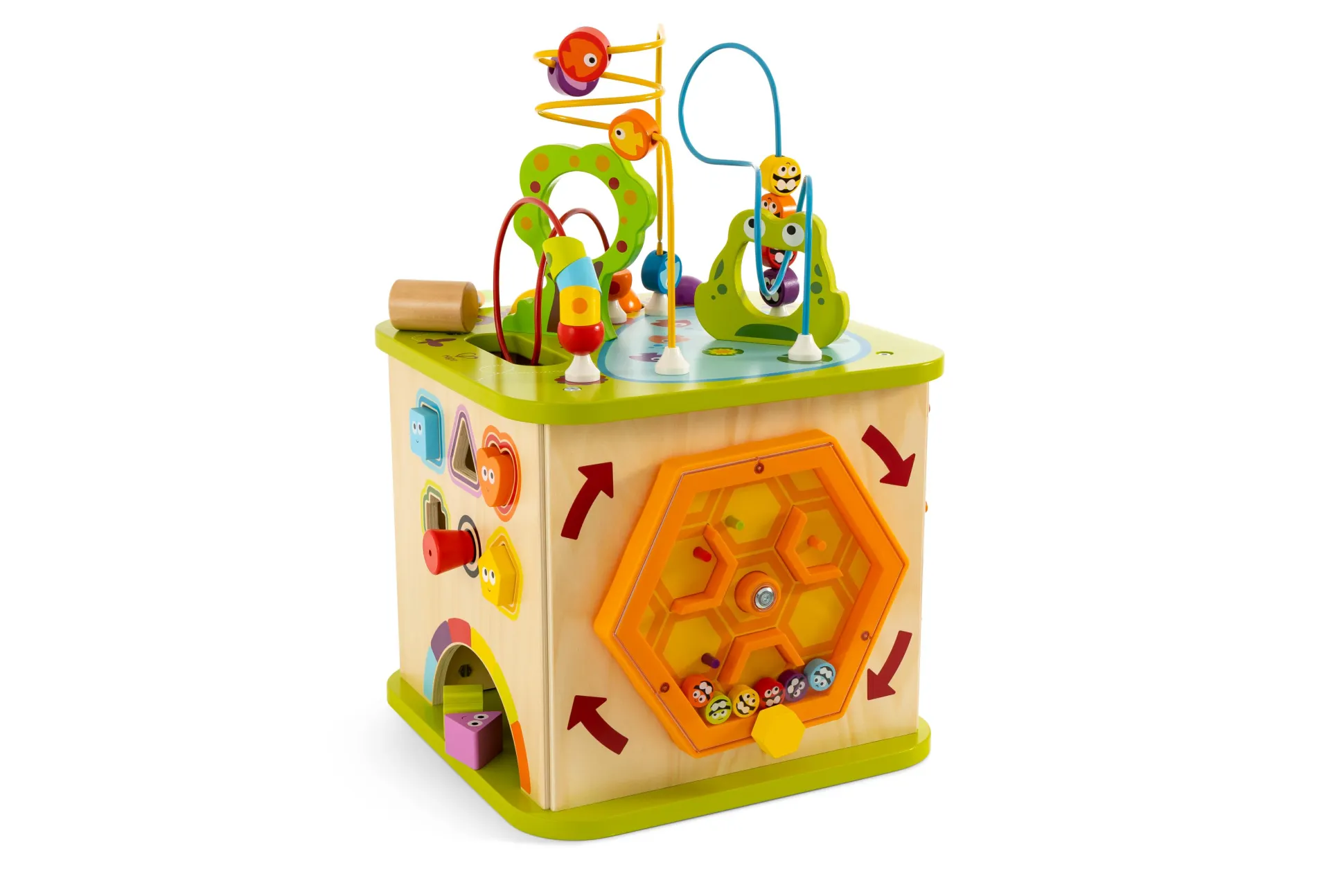 Der Motorikwürfel Kleine Tierchen von Hape ist mit Motorikschleifen, Formen, Hebel und jeder Menge verschiedenen Geschöpfe ausgestattet. Sie verwandeln diesen bunten fünfseitigen Spielwürfel in eine Aktivitäten-Hochburg. Verschiedene Labyrinthe unterstützen die Entwicklung von Feinmotorik und logischem Denken.